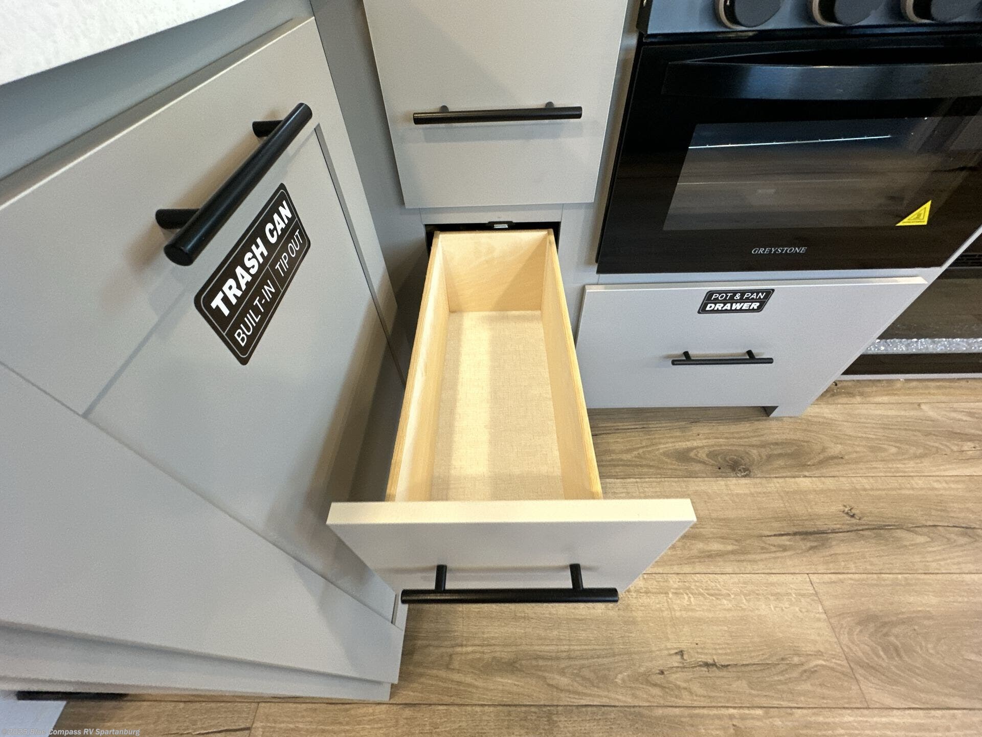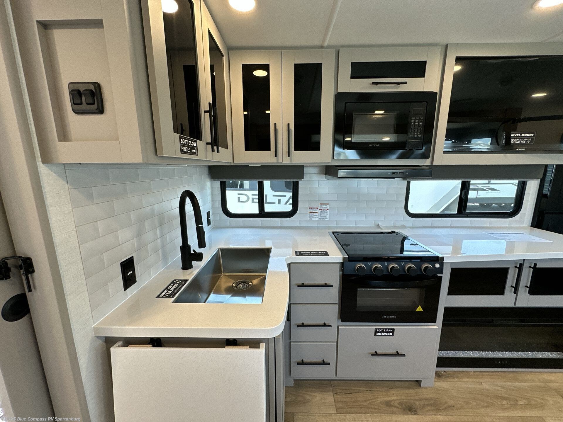 Form and function works together with every one of these Alliance RV Delta travel trailers! They are built with a walk-on roof with a seamless PVC roof covering, Mylar reinforced exterior seals, and a heated and enclosed underbelly to protect your unit in all seasons. The commercial grade vinyl flooring will be easy to clean and the oversized atrium windows throughout let in plenty of natural sunlight. With 62 cu. ft. of drop frame pass-through storage, you can bring along all of your essential camping gear plus it has USB charging for more convenience. There are many at home interior conveniences including a Bluetooth speaker, USB charging throughout, and even a pull-out kitchen trash can. Come find your favorite model today!