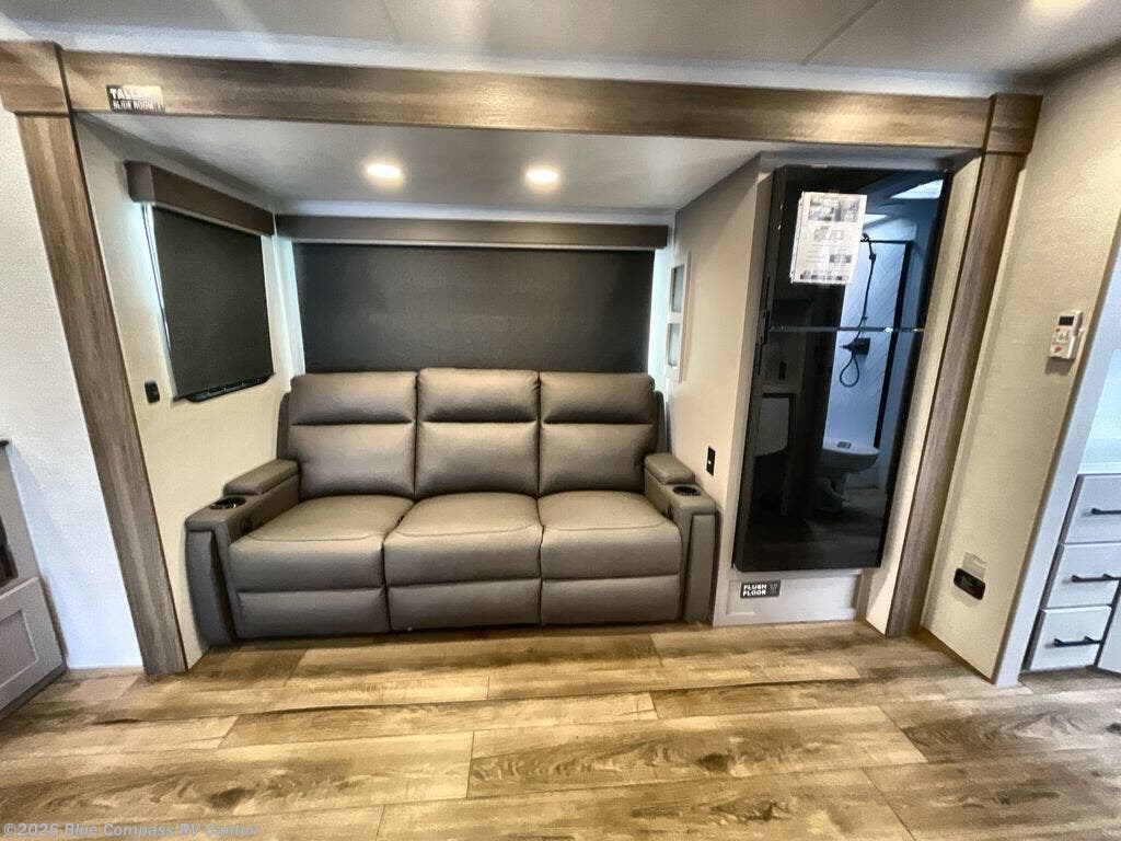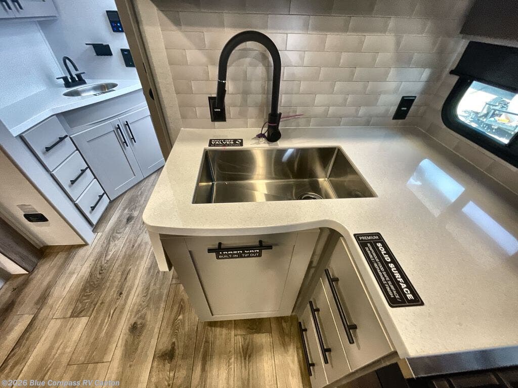 Form and function works together with every one of these Alliance RV Delta travel trailers! They are built with a walk-on roof with a seamless PVC roof covering, Mylar reinforced exterior seals, and a heated and enclosed underbelly to protect your unit in all seasons. The commercial grade vinyl flooring will be easy to clean and the oversized atrium windows throughout let in plenty of natural sunlight. With 62 cu. ft. of drop frame pass-through storage, you can bring along all of your essential camping gear plus it has USB charging for more convenience. There are many at home interior conveniences including a Bluetooth speaker, USB charging throughout, and even a pull-out kitchen trash can. Come find your favorite model today!