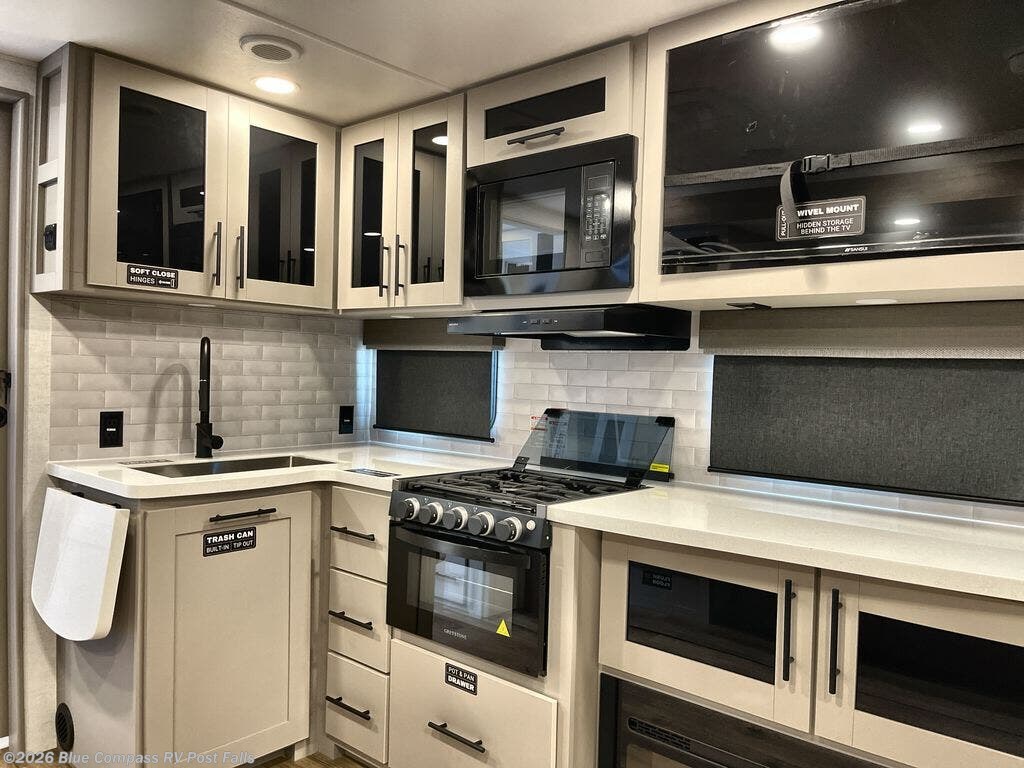 Form and function works together with every one of these Alliance RV Delta travel trailers! They are built with a walk-on roof with a seamless PVC roof covering, Mylar reinforced exterior seals, and a heated and enclosed underbelly to protect your unit in all seasons. The commercial grade vinyl flooring will be easy to clean and the oversized atrium windows throughout let in plenty of natural sunlight. With 62 cu. ft. of drop frame pass-through storage, you can bring along all of your essential camping gear plus it has USB charging for more convenience. There are many at home interior conveniences including a Bluetooth speaker, USB charging throughout, and even a pull-out kitchen trash can. Come find your favorite model today!