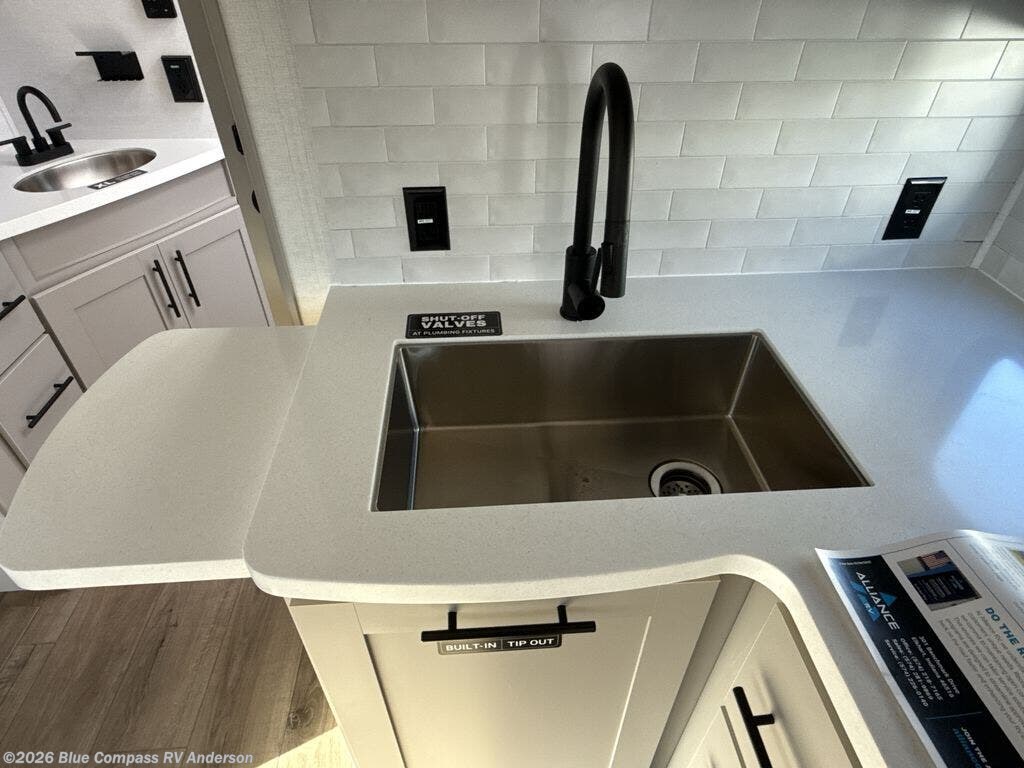 Form and function works together with every one of these Alliance RV Delta travel trailers! They are built with a walk-on roof with a seamless PVC roof covering, Mylar reinforced exterior seals, and a heated and enclosed underbelly to protect your unit in all seasons. The commercial grade vinyl flooring will be easy to clean and the oversized atrium windows throughout let in plenty of natural sunlight. With 62 cu. ft. of drop frame pass-through storage, you can bring along all of your essential camping gear plus it has USB charging for more convenience. There are many at home interior conveniences including a Bluetooth speaker, USB charging throughout, and even a pull-out kitchen trash can. Come find your favorite model today!