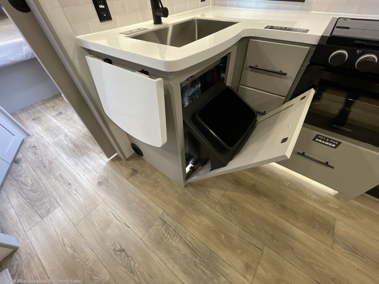 Form and function works together with every one of these Alliance RV Delta travel trailers! They are built with a walk-on roof with a seamless PVC roof covering, Mylar reinforced exterior seals, and a heated and enclosed underbelly to protect your unit in all seasons. The commercial grade vinyl flooring will be easy to clean and the oversized atrium windows throughout let in plenty of natural sunlight. With 62 cu. ft. of drop frame pass-through storage, you can bring along all of your essential camping gear plus it has USB charging for more convenience. There are many at home interior conveniences including a Bluetooth speaker, USB charging throughout, and even a pull-out kitchen trash can. Come find your favorite model today!