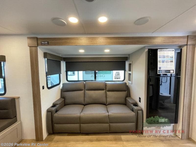 Form and function works together with every one of these Alliance RV Delta travel trailers! They are built with a walk-on roof with a seamless PVC roof covering, Mylar reinforced exterior seals, and a heated and enclosed underbelly to protect your unit in all seasons. The commercial grade vinyl flooring will be easy to clean and the oversized atrium windows throughout let in plenty of natural sunlight. With 62 cu. ft. of drop frame pass-through storage, you can bring along all of your essential camping gear plus it has USB charging for more convenience. There are many at home interior conveniences including a Bluetooth speaker, USB charging throughout, and even a pull-out kitchen trash can. Come find your favorite model today!