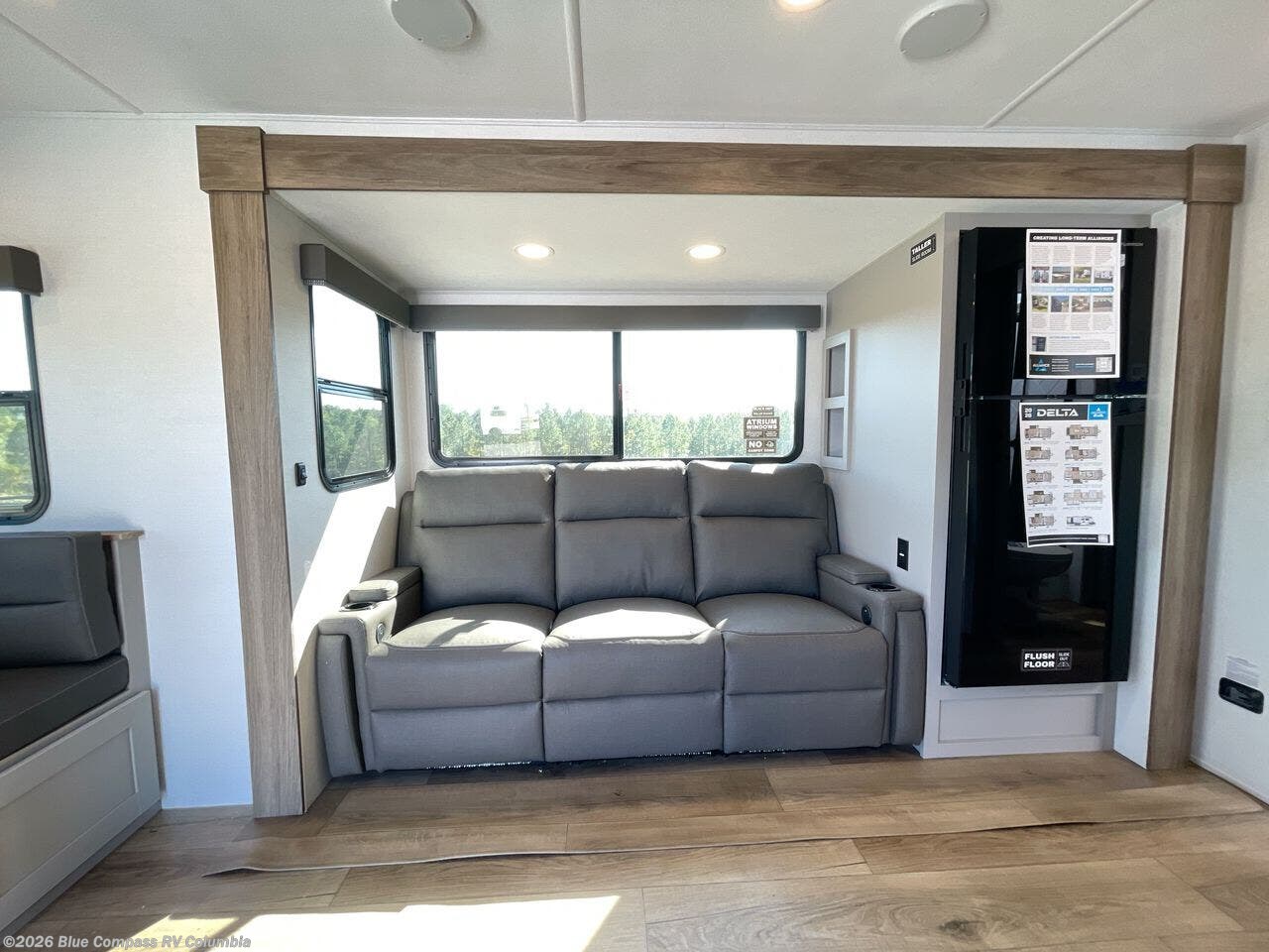 Form and function work together with every one of these Alliance RV Delta travel trailers! They are built with a walk-on roof with a seamless PVC roof covering, Mylar reinforced exterior seals, and a heated and enclosed underbelly to protect your unit. The commercial grade vinyl flooring will be easy to clean, and the oversized atrium windows throughout let in plenty of natural sunlight. With 62 cu. ft. of drop frame pass-through storage, you can bring along all of your essential camping gear plus it has USB charging for more convenience. There are many at home interior conveniences including a Bluetooth speaker, USB charging throughout, and even a pull-out kitchen trash can. Come find your favorite model today!
