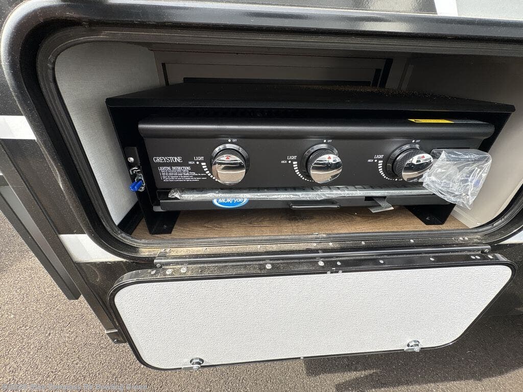 Grab your hiking boots and your sense of adventure for fun camping trips in this single slide out travel trailer. The rear booth dinette includes overhead storage for your things and the sofa slide out is in great view of the 40" HDTV. There is also a fireplace here that will make your space feel more like home plus more storage space, including a pantry with pull out trays and storage above the 10 cu. ft. 12V refrigerator. A walk-through bath will take you to the front master bedroom with a queen bed, wardrobe nightstands, plus its own exterior entry door!