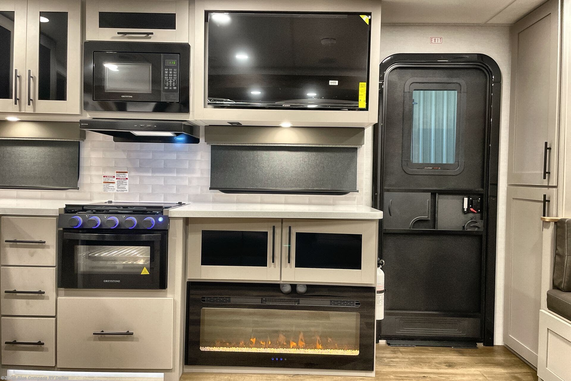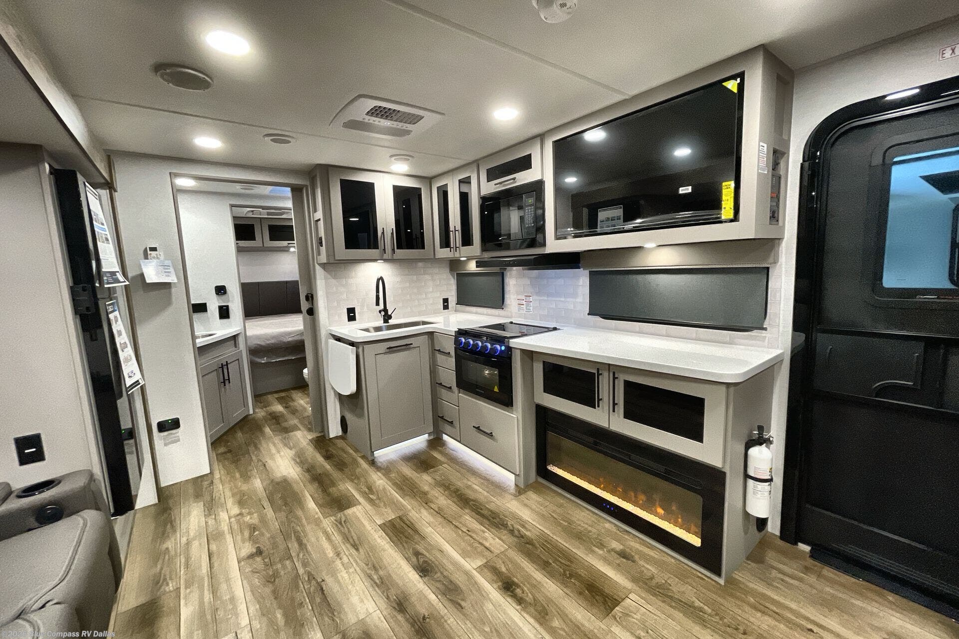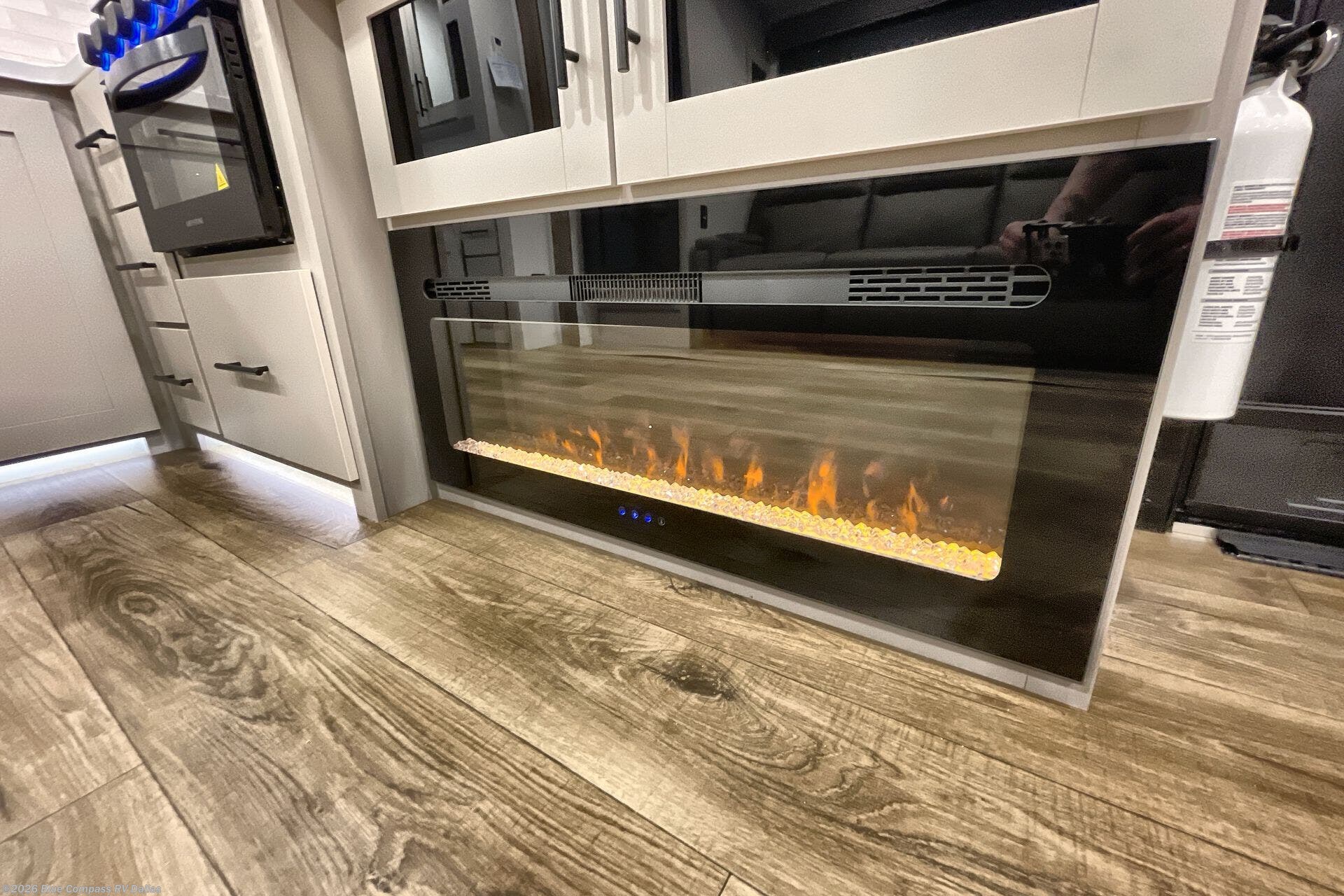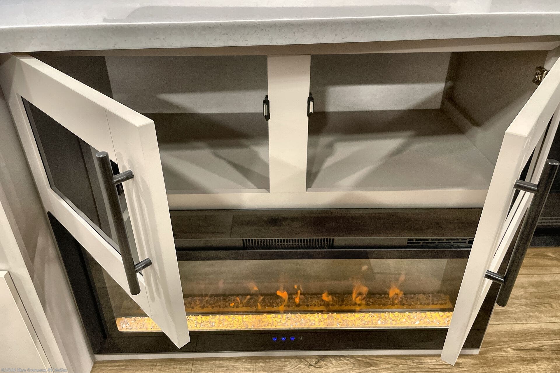Grab your hiking boots and your sense of adventure for fun camping trips in this single slide out travel trailer. The rear booth dinette includes overhead storage for your things and the sofa slide out is in great view of the 40" HDTV. There is also a fireplace here that will make your space feel more like home plus more storage space, including a pantry with pull out trays and storage above the 10 cu. ft. 12V refrigerator. A walk-through bath will take you to the front master bedroom with a queen bed, wardrobe nightstands, plus its own exterior entry door!
