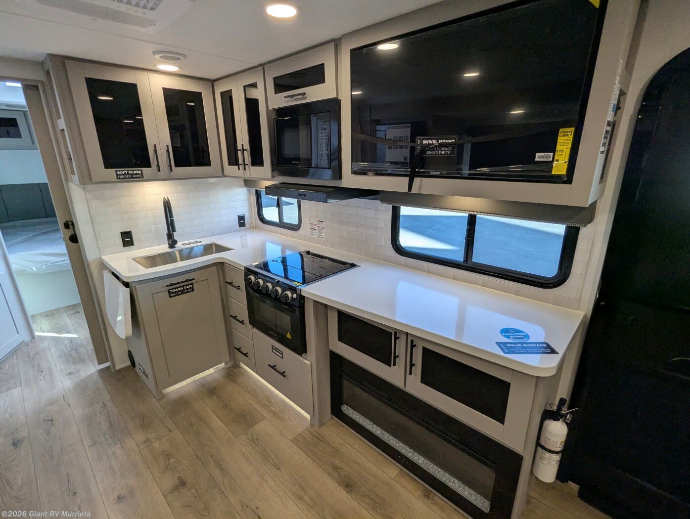 - Walk-Through Bath Excellence: Includes a generous walk-through bath, pass-through storage, and exterior griddle for outdoor meals, plus USB charging throughout and pull-out kitchen trash can.