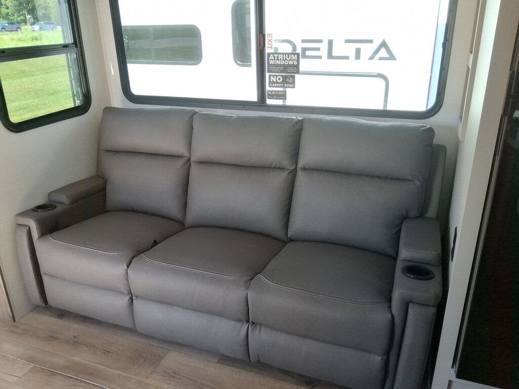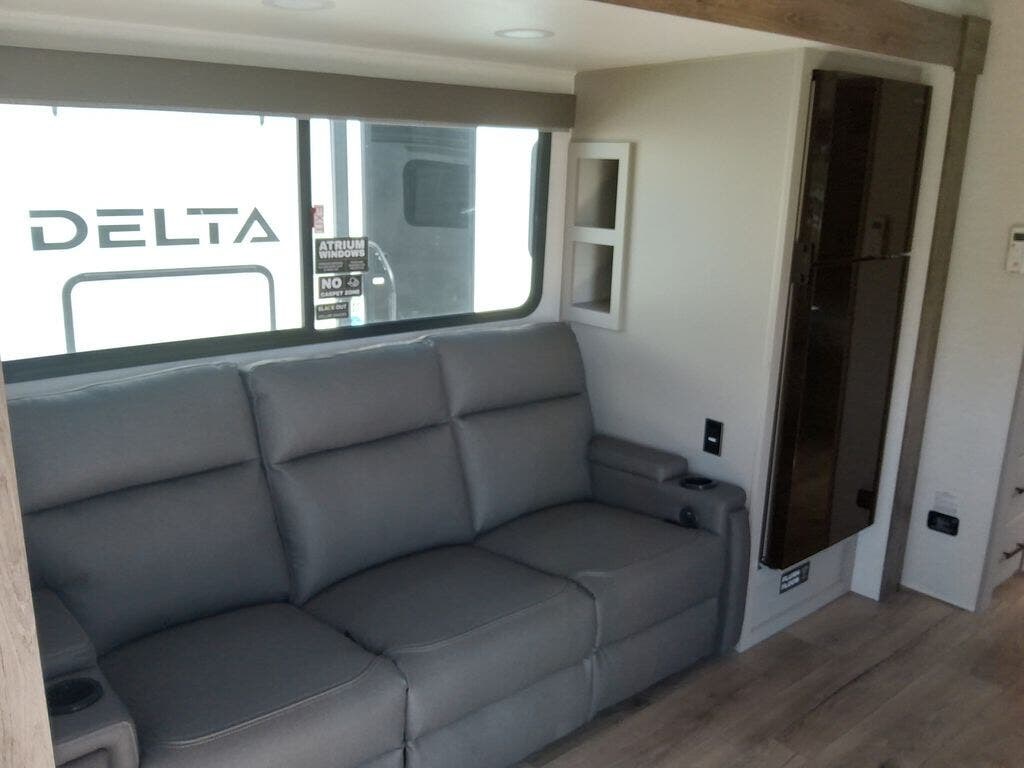 Form and function work together with every one of these Alliance RV Delta travel trailers! They are built with a walk-on roof with a seamless PVC roof covering, Mylar reinforced exterior seals, and a heated and enclosed underbelly to protect your unit. The commercial grade vinyl flooring will be easy to clean, and the oversized atrium windows throughout let in plenty of natural sunlight. With 62 cu. ft. of drop frame pass-through storage, you can bring along all of your essential camping gear plus it has USB charging for more convenience. There are many at home interior conveniences including a Bluetooth speaker, USB charging throughout, and even a pull-out kitchen trash can. Come find your favorite model today!