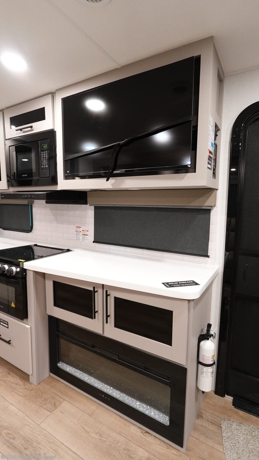 Discover the 2026 Alliance RV Delta 252RL, a perfect blend of comfort and functionality designed for those who crave adventure without sacrificing the comforts of home. This RV offers a spacious layout with a center kitchen and rear living area, making it ideal for entertaining or relaxing after a day of exploration. The 18-foot powered retractable awning extends your living space outdoors, providing a perfect spot for enjoying nature or dining al fresco with the included 6-foot folding camp table. Inside, you'll find a cozy queen bed in the front bedroom, offering a peaceful retreat. The living area boasts a convertible sofa and dinette, accommodating up to six sleepers comfortably. The well-appointed kitchen features a three-burner cooktop and a full-size electric refrigerator, ensuring you have all the essentials for gourmet meals on the road. With ample storage, including overhead compartments and a pantry, you'll have plenty of room for all your travel necessities. The Delta 252RL is equipped with a 30” x 36” shower and a fireplace for added comfort. The dual axles and Goodyear Endurance tires ensure a smooth ride, while the 45-gallon fresh water tank and 90-gallon gray water capacity mean extended stays are a breeze. Whether you're a weekend warrior or a full-time traveler, this RV is ready to accompany you on your next journey. For more details, visit your nearest General RV Dealership.