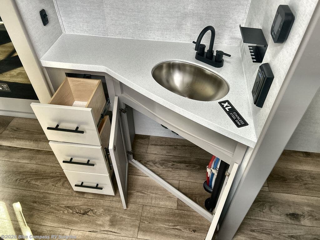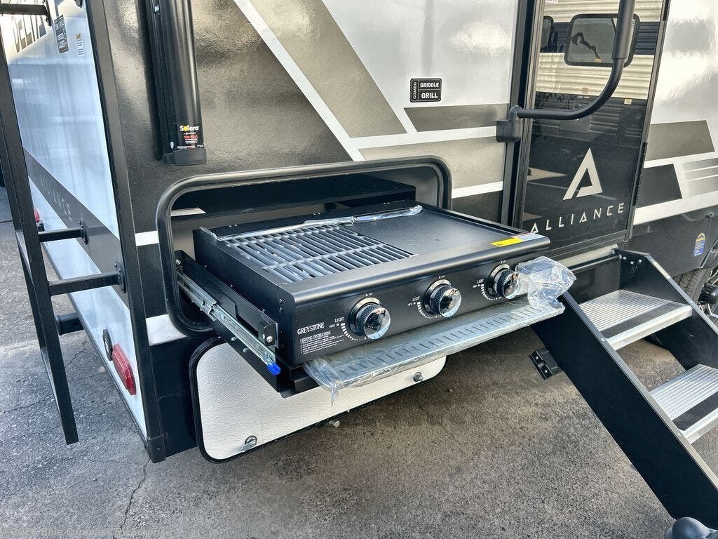 Form and function work together with every one of these Alliance RV Delta travel trailers! They are built with a walk-on roof with a seamless PVC roof covering, Mylar reinforced exterior seals, and a heated and enclosed underbelly to protect your unit. The commercial grade vinyl flooring will be easy to clean, and the oversized atrium windows throughout let in plenty of natural sunlight. With 62 cu. ft. of drop frame pass-through storage, you can bring along all of your essential camping gear plus it has USB charging for more convenience. There are many at home interior conveniences including a Bluetooth speaker, USB charging throughout, and even a pull-out kitchen trash can. Come find your favorite model today!
