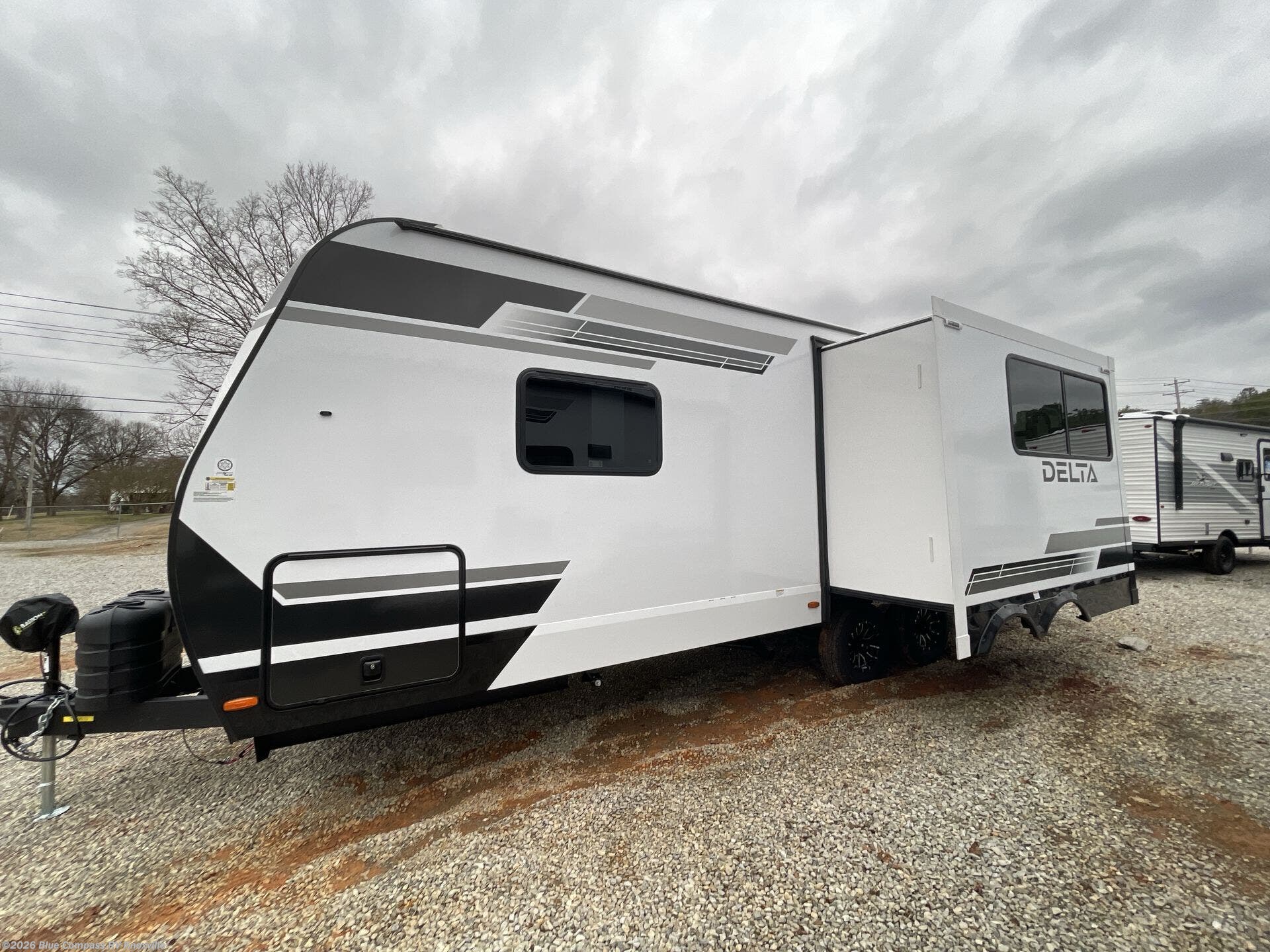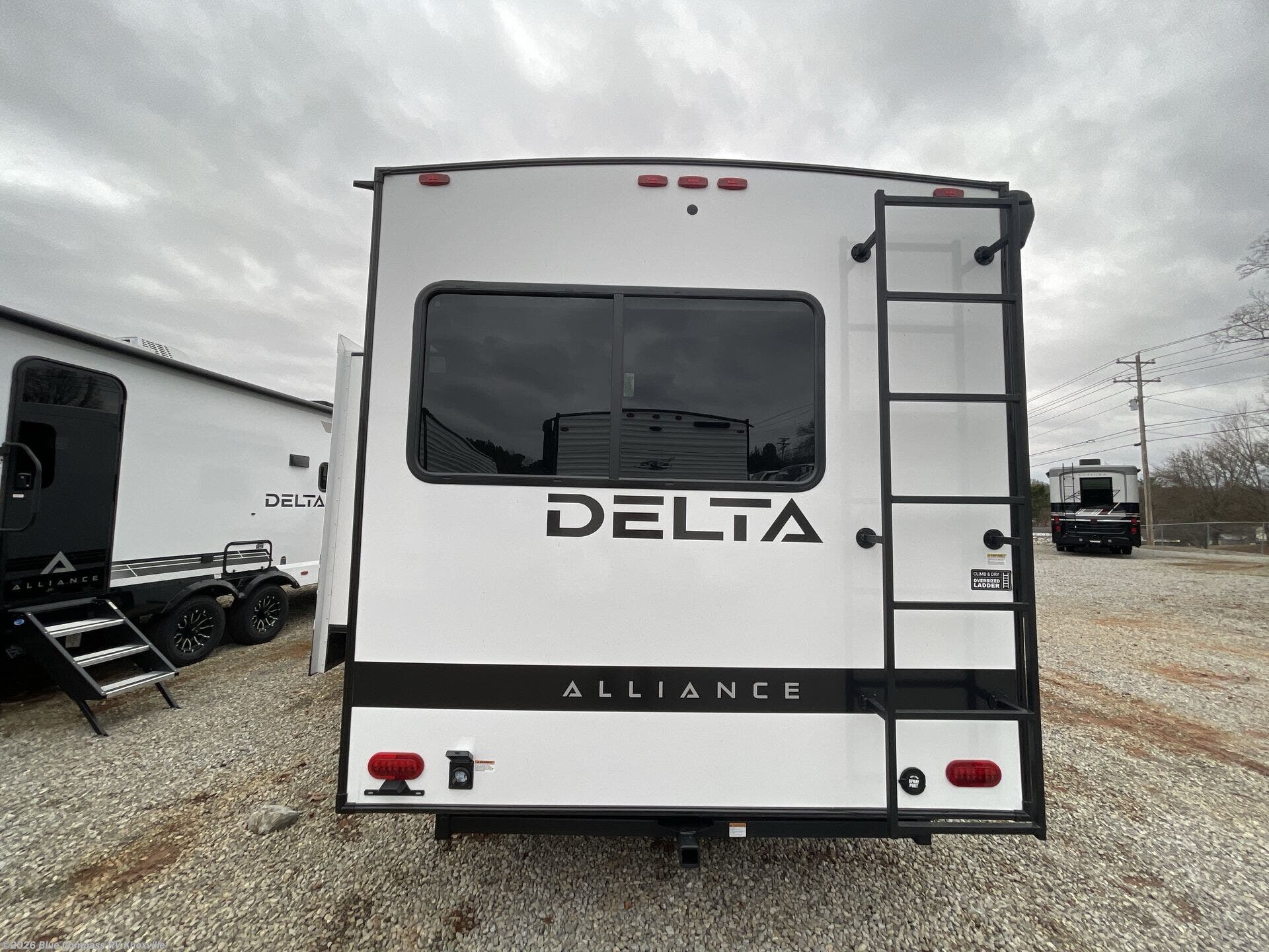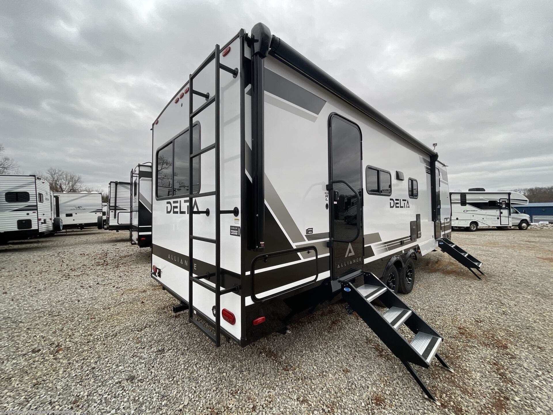 Form and function work together with every one of these Alliance RV Delta travel trailers! They are built with a walk-on roof with a seamless PVC roof covering, Mylar reinforced exterior seals, and a heated and enclosed underbelly to protect your unit. The commercial grade vinyl flooring will be easy to clean, and the oversized atrium windows throughout let in plenty of natural sunlight. With 62 cu. ft. of drop frame pass-through storage, you can bring along all of your essential camping gear. There are many at home interior conveniences including a Bluetooth speaker, USB charging throughout, and even Roller shades throughout. Come find your favorite model today!