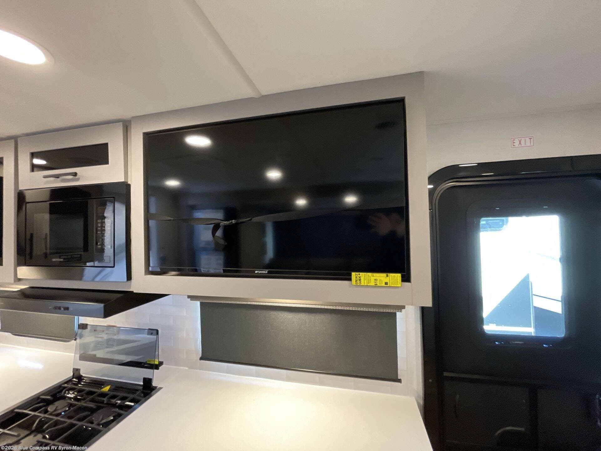 Grab your hiking boots and your sense of adventure for fun camping trips in this single slide out travel trailer. The rear booth dinette includes overhead storage for your things and the sofa slide out is in great view of the 40" HDTV. There is also a fireplace here that will make your space feel more like home plus more storage space, including a pantry with pull out trays and storage above the 10 cu. ft. 12V refrigerator. A walk-through bath will take you to the front master bedroom with a queen bed, wardrobe nightstands, plus its own exterior entry door!