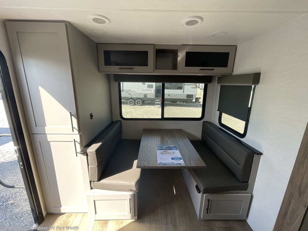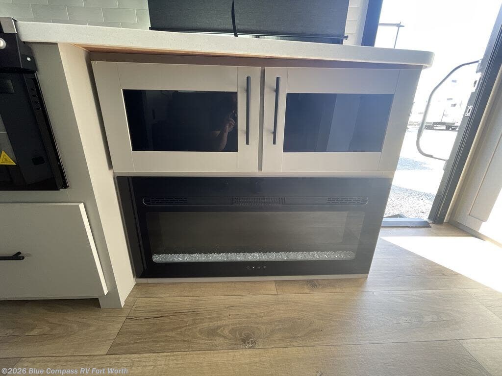 Grab your hiking boots and your sense of adventure for fun camping trips in this single slide out travel trailer. The rear booth dinette includes overhead storage for your things and the sofa slide out is in great view of the 40" HDTV. There is also a fireplace here that will make your space feel more like home plus more storage space, including a pantry with pull out trays and storage above the 10 cu. ft. 12V refrigerator. A walk-through bath will take you to the front master bedroom with a queen bed, wardrobe nightstands, plus its own exterior entry door!