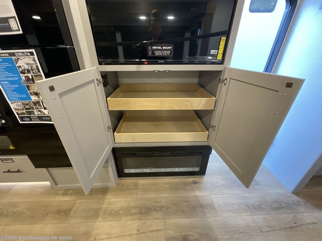 Form and function works together with every one of these Alliance RV Delta travel trailers! They are built with a walk-on roof with a seamless PVC roof covering, Mylar reinforced exterior seals, and a heated and enclosed underbelly to protect your unit in all seasons. The commercial grade vinyl flooring will be easy to clean and the oversized atrium windows throughout let in plenty of natural sunlight. With 62 cu. ft. of drop frame pass-through storage, you can bring along all of your essential camping gear plus it has USB charging for more convenience. There are many at home interior conveniences including a Bluetooth speaker, USB charging throughout, and even a pull-out kitchen trash can. Come find your favorite model today!