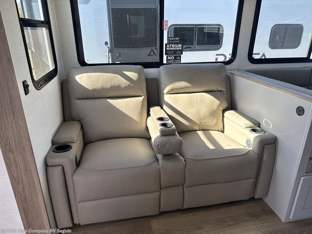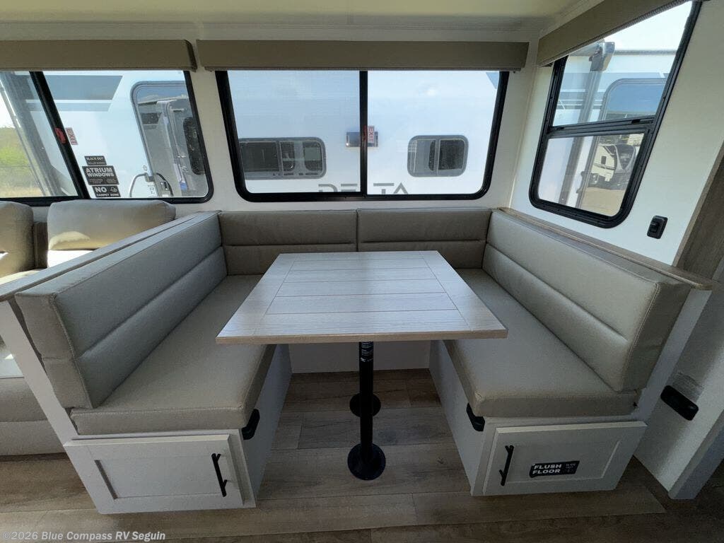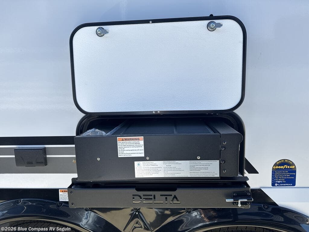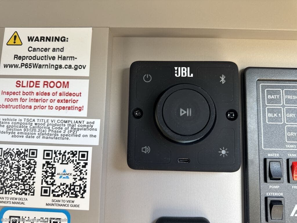 Form and function work together with every one of these Alliance RV Delta travel trailers! They are built with a walk-on roof with a seamless PVC roof covering, Mylar reinforced exterior seals, and a heated and enclosed underbelly to protect your unit. The commercial grade vinyl flooring will be easy to clean, and the oversized atrium windows throughout let in plenty of natural sunlight. With 62 cu. ft. of drop frame pass-through storage, you can bring along all of your essential camping gear plus it has USB charging for more convenience. There are many at home interior conveniences including a Bluetooth speaker, USB charging throughout, and even a pull-out kitchen trash can. Come find your favorite model today!