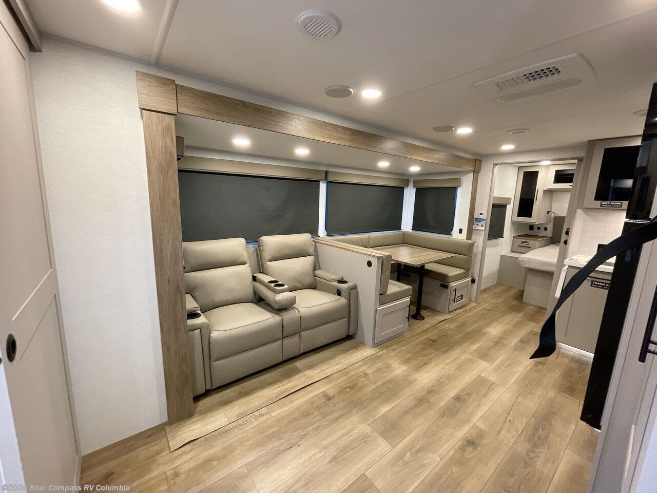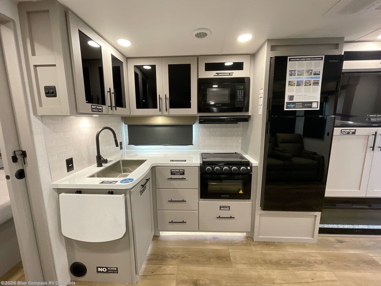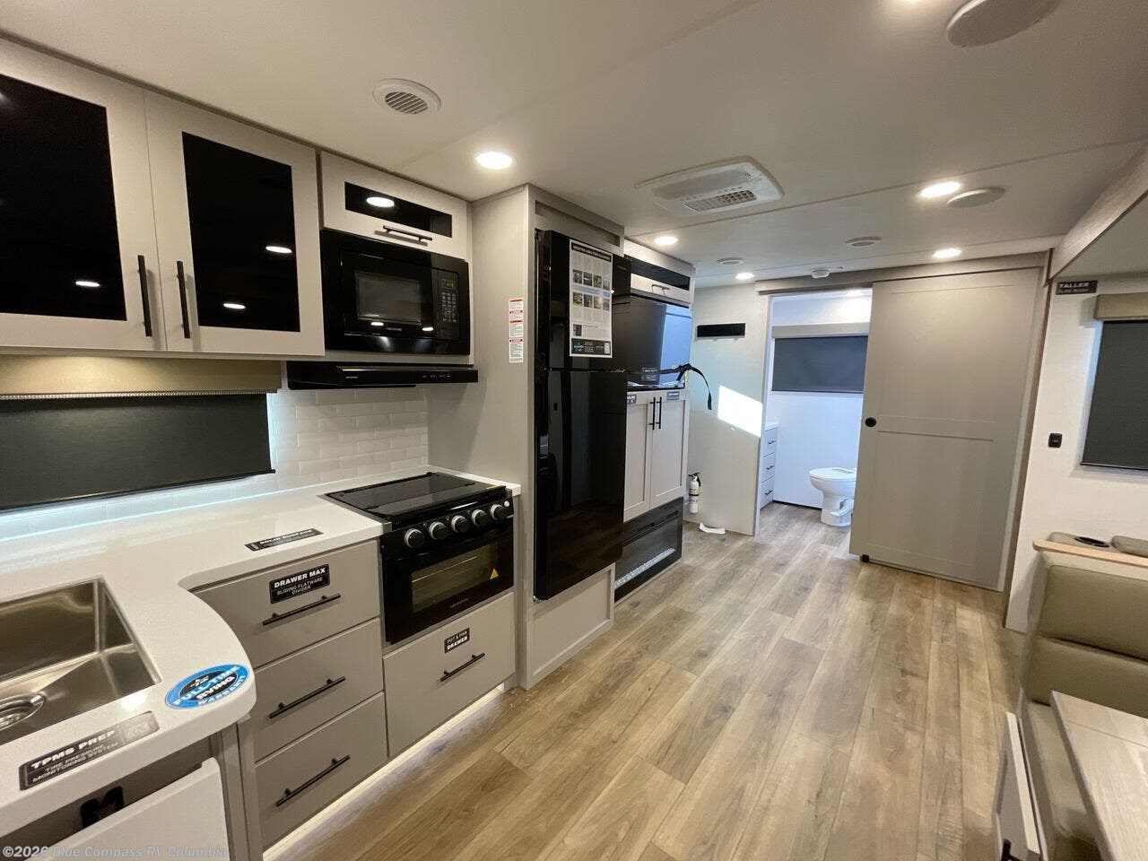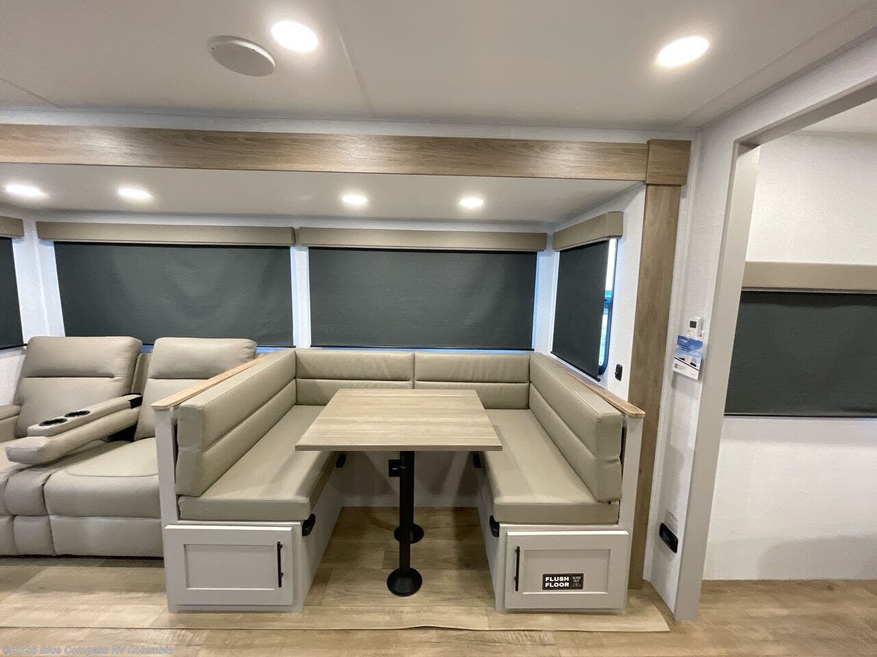 Form and function work together with every one of these Alliance RV Delta travel trailers! They are built with a walk-on roof with a seamless PVC roof covering, Mylar reinforced exterior seals, and a heated and enclosed underbelly to protect your unit. The commercial grade vinyl flooring will be easy to clean, and the oversized atrium windows throughout let in plenty of natural sunlight. With 62 cu. ft. of drop frame pass-through storage, you can bring along all of your essential camping gear plus it has USB charging for more convenience. There are many at home interior conveniences including a Bluetooth speaker, USB charging throughout, and even a pull-out kitchen trash can. Come find your favorite model today!
