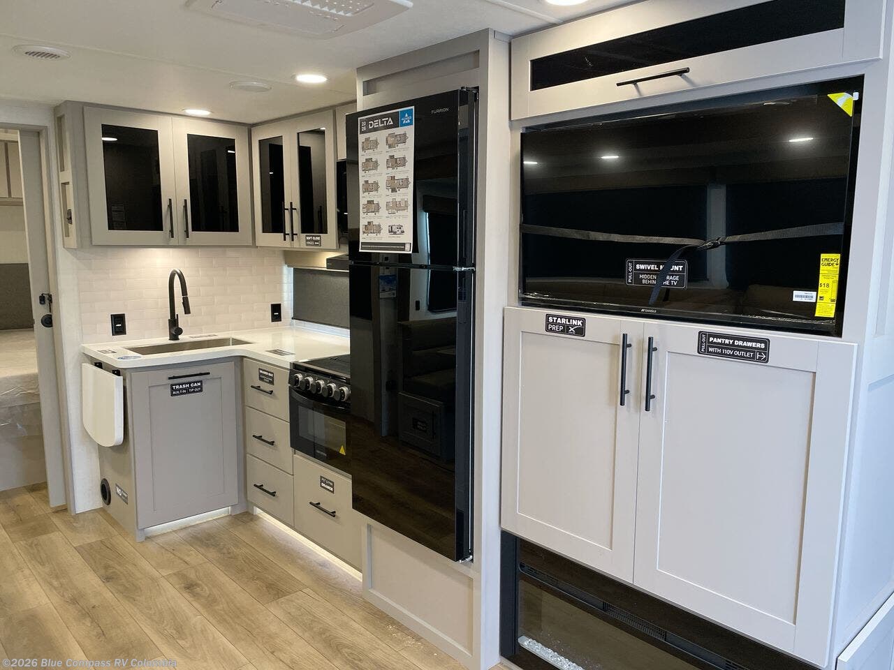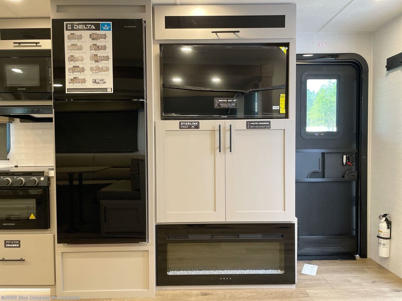 Form and function work together with every one of these Alliance RV Delta travel trailers! They are built with a walk-on roof with a seamless PVC roof covering, Mylar reinforced exterior seals, and a heated and enclosed underbelly to protect your unit. The commercial grade vinyl flooring will be easy to clean, and the oversized atrium windows throughout let in plenty of natural sunlight. With 62 cu. ft. of drop frame pass-through storage, you can bring along all of your essential camping gear plus it has USB charging for more convenience. There are many at home interior conveniences including a Bluetooth speaker, USB charging throughout, and even a pull-out kitchen trash can. Come find your favorite model today!