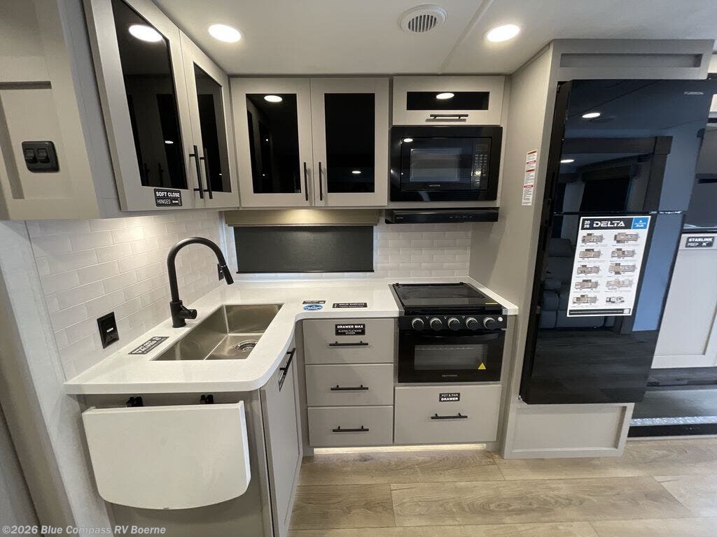 Form and function work together with every one of these Alliance RV Delta travel trailers! They are built with a walk-on roof with a seamless PVC roof covering, Mylar reinforced exterior seals, and a heated and enclosed underbelly to protect your unit. The commercial grade vinyl flooring will be easy to clean, and the oversized atrium windows throughout let in plenty of natural sunlight. With 62 cu. ft. of drop frame pass-through storage, you can bring along all of your essential camping gear plus it has USB charging for more convenience. There are many at home interior conveniences including a Bluetooth speaker, USB charging throughout, and even a pull-out kitchen trash can. Come find your favorite model today!