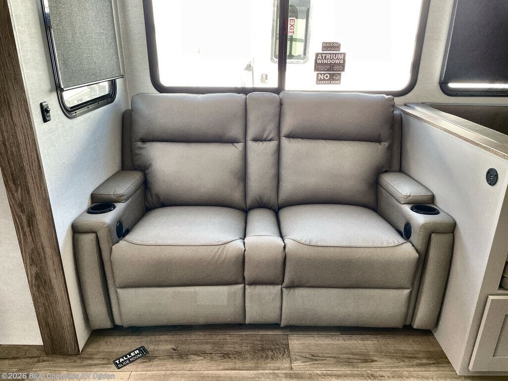 Form and function work together with every one of these Alliance RV Delta travel trailers! They are built with a walk-on roof with a seamless PVC roof covering, Mylar reinforced exterior seals, and a heated and enclosed underbelly to protect your unit. The commercial grade vinyl flooring will be easy to clean, and the oversized atrium windows throughout let in plenty of natural sunlight. With 62 cu. ft. of drop frame pass-through storage, you can bring along all of your essential camping gear. There are many at home interior conveniences including a Bluetooth speaker, USB charging throughout, and even Roller shades throughout. Come find your favorite model today!