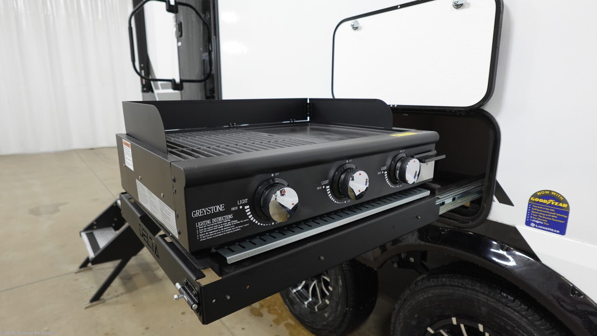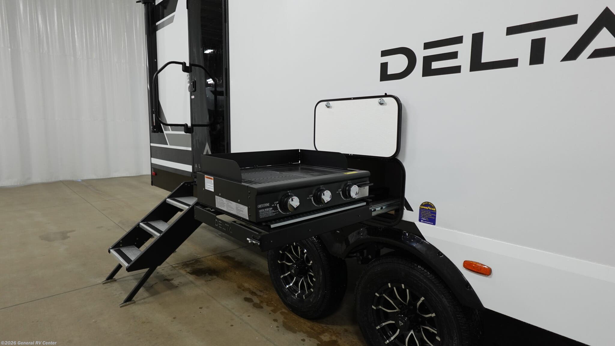 Experience the perfect blend of comfort and adventure with the 2026 Alliance RV Delta 262RB. This travel trailer is designed to be your home away from home, with a spacious layout that comfortably sleeps up to six. The heart of this RV is its center kitchen, complete with a full-size electric refrigerator and a three-burner cooktop, making it easy to whip up your favorite meals on the road. The convertible dinette offers a cozy spot for dining and easily transforms into additional sleeping space. The center living area provides a comfortable setting for relaxation, enhanced by an entertainment center ready for movie nights. The Delta 262RB features a private front bedroom with a luxurious queen bed, ensuring a restful night's sleep. At the rear, the cleverly designed bathroom offers ample space and a practical shower with a curtain. On the exterior, the 21-foot powered retractable awning extends your living space outdoors, perfect for enjoying the scenic views. With a generous cargo capacity and durable Goodyear Endurance Tires, this RV is ready for any journey you embark on. Visit your nearest General RV dealership to explore this incredible model in person and start your next adventure today!