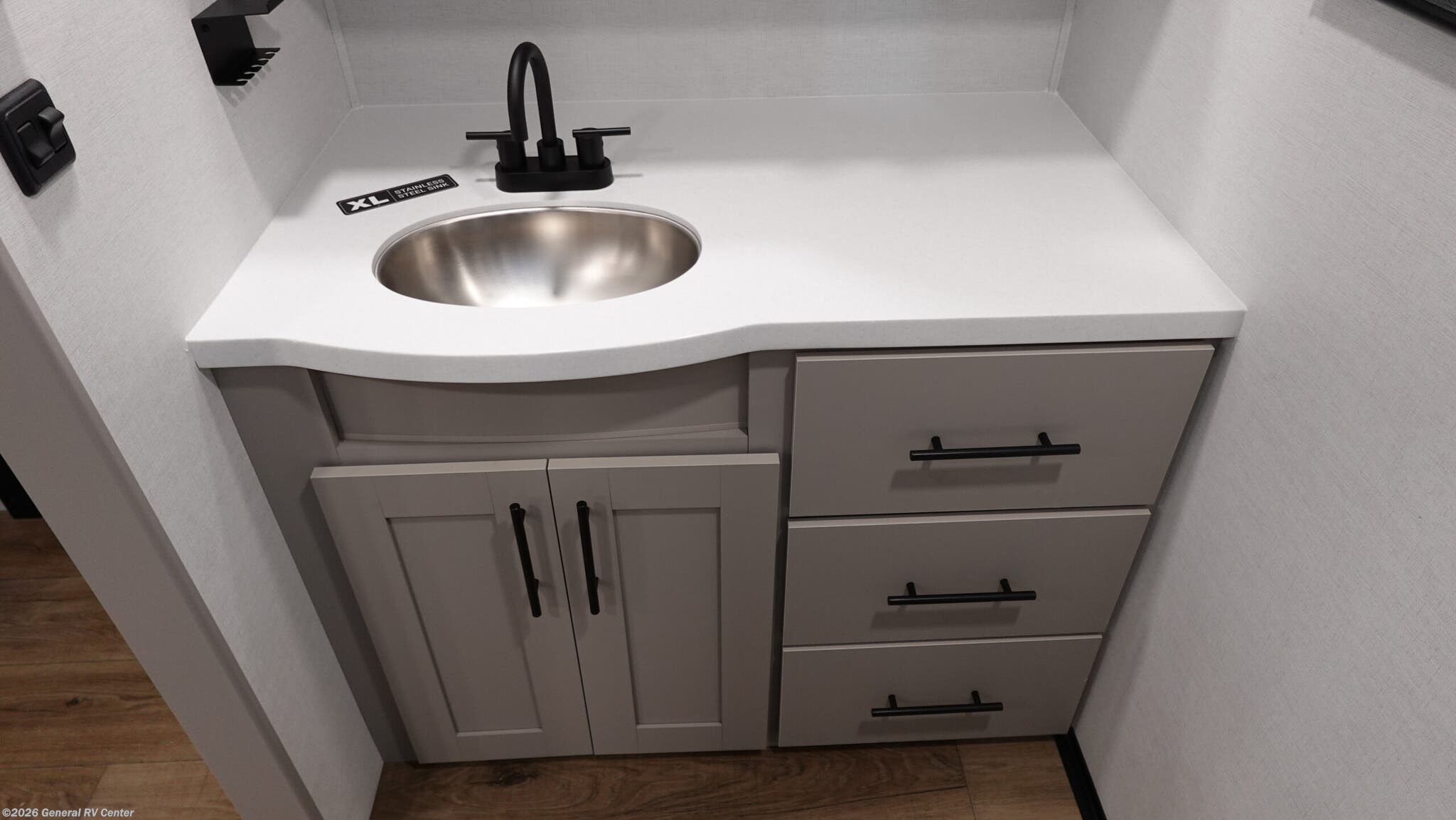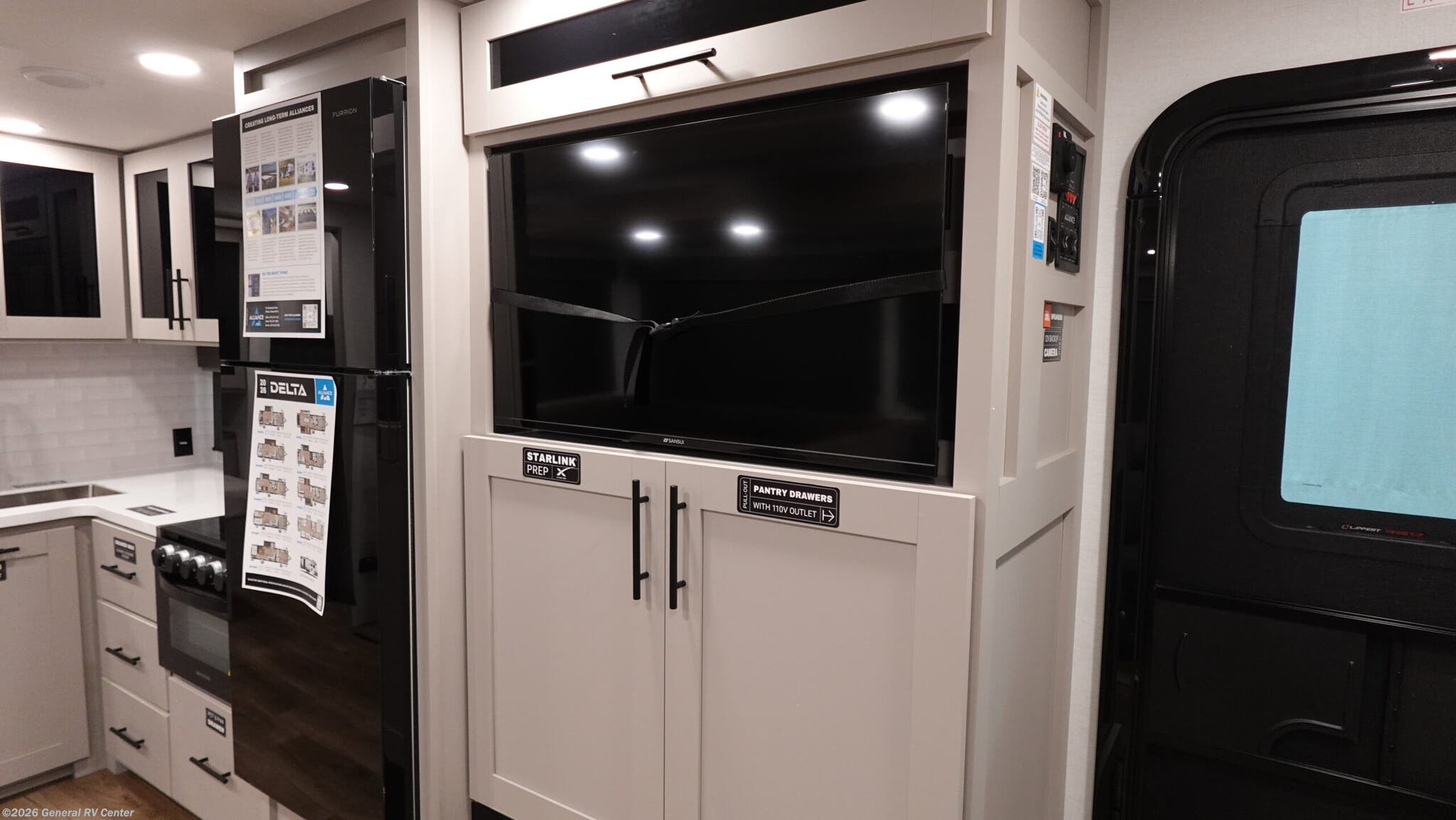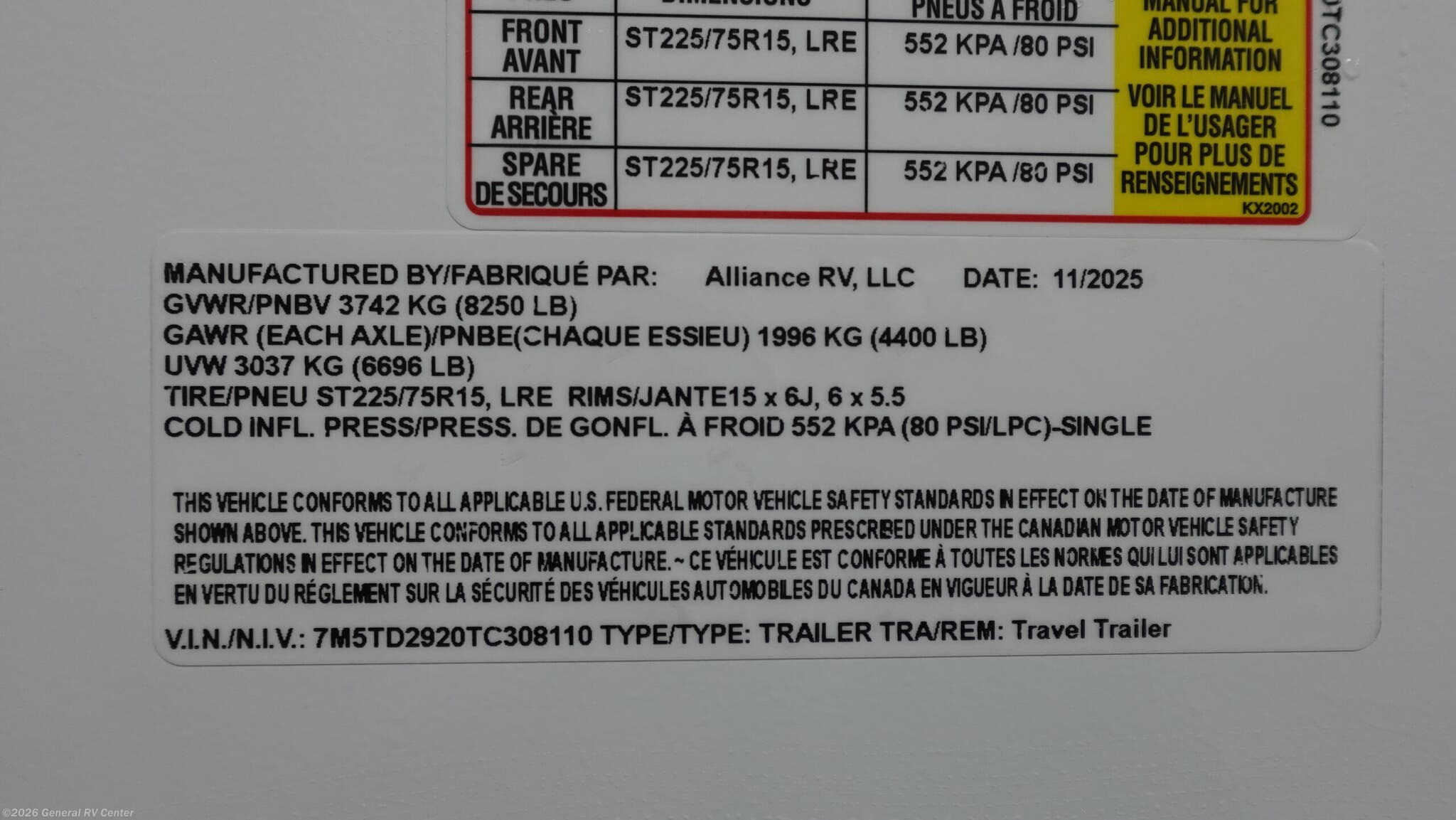 Experience the perfect blend of comfort and adventure with the 2026 Alliance RV Delta 262RB. This travel trailer is designed to be your home away from home, with a spacious layout that comfortably sleeps up to six. The heart of this RV is its center kitchen, complete with a full-size electric refrigerator and a three-burner cooktop, making it easy to whip up your favorite meals on the road. The convertible dinette offers a cozy spot for dining and easily transforms into additional sleeping space. The center living area provides a comfortable setting for relaxation, enhanced by an entertainment center ready for movie nights. The Delta 262RB features a private front bedroom with a luxurious queen bed, ensuring a restful night's sleep. At the rear, the cleverly designed bathroom offers ample space and a practical shower with a curtain. On the exterior, the 21-foot powered retractable awning extends your living space outdoors, perfect for enjoying the scenic views. With a generous cargo capacity and durable Goodyear Endurance Tires, this RV is ready for any journey you embark on. Visit your nearest General RV dealership to explore this incredible model in person and start your next adventure today!