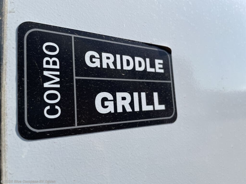 Head to your favorite camping spot in this double slide out travel trailer! You can set up the 19' awning when you arrive, then start lunch on the exterior griddle. There is also an exterior refrigerator for cold drinks! If the weather isn't cooperating, the rear kitchen includes generous counter space to prep meals and all the appliances needed. A booth dinette inside provides a place to dine together, or you can choose the optional table and chairs if you prefer that seating arrangement. You're sure to enjoy the theater seat in direct view of the 40" TV for movie nights, and when you're ready to call it a night, the queen bed in the front bedroom will provide a great night's rest.