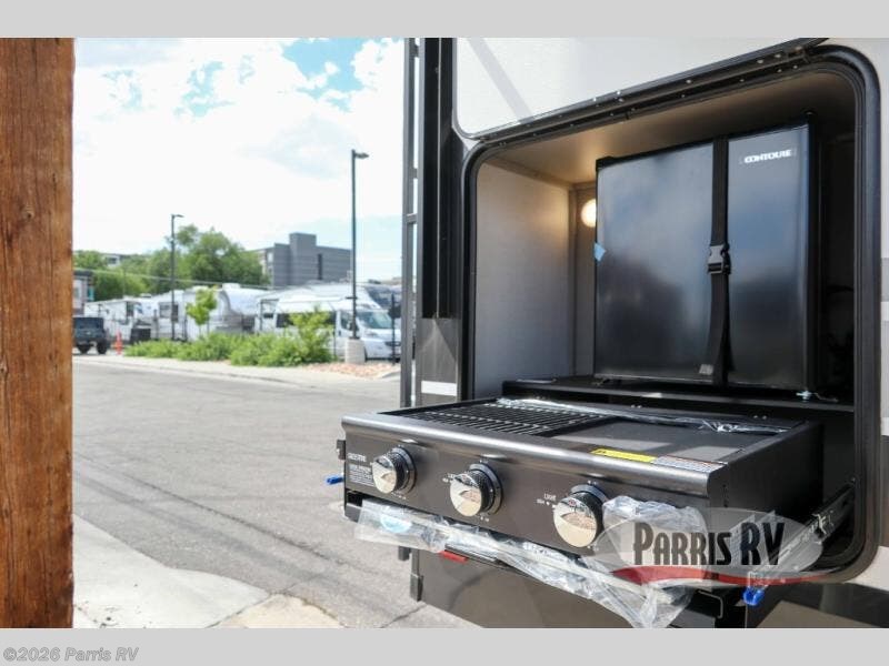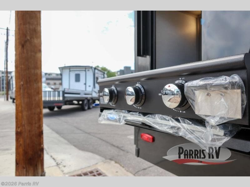 Head to your favorite camping spot in this double slide out travel trailer! You can set up the 19' awning when you arrive, then start lunch on the exterior griddle. There is also an exterior refrigerator for cold drinks! If the weather isn't cooperating, the rear kitchen includes generous counter space to prep meals and all the appliances needed. A booth dinette inside provides a place to dine together, or you can choose the optional table and chairs if you prefer that seating arrangement. You're sure to enjoy the theater seat in direct view of the 40" TV for movie nights, and when you're ready to call it a night, the queen bed in the front bedroom will provide a great night's rest.