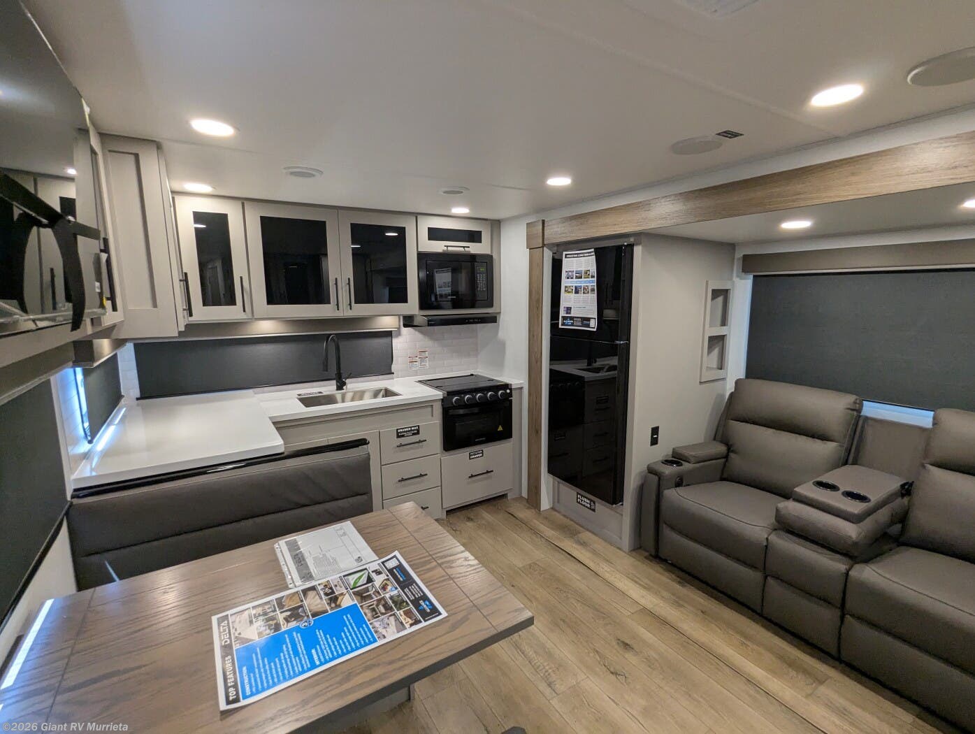 Enjoy luxury and functionality with the 2026 Alliance RV Delta 274RKW from Giant RV, a premium travel trailer designed for couples or small families. At 31'11" with a 7,200 lbs dry weight, it’s towable by half-ton trucks. The rear kitchen boasts a three-burner cooktop, 10 cu.ft. 12V fridge, and a coffee hutch. Relax in the spacious living area with theater seating, a U-shaped dinette, and a 40" HDTV. The front private bedroom features a 60"x80" queen bed and fireplace. A full bathroom with a 30"x36" shower ensures comfort. Stay connected with WiFi-ready tech and a 400W solar panel.