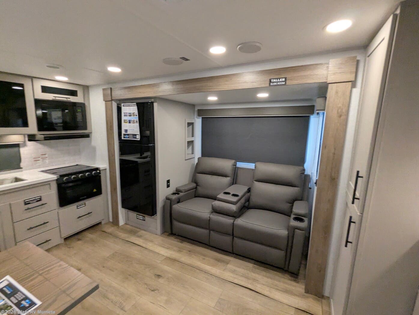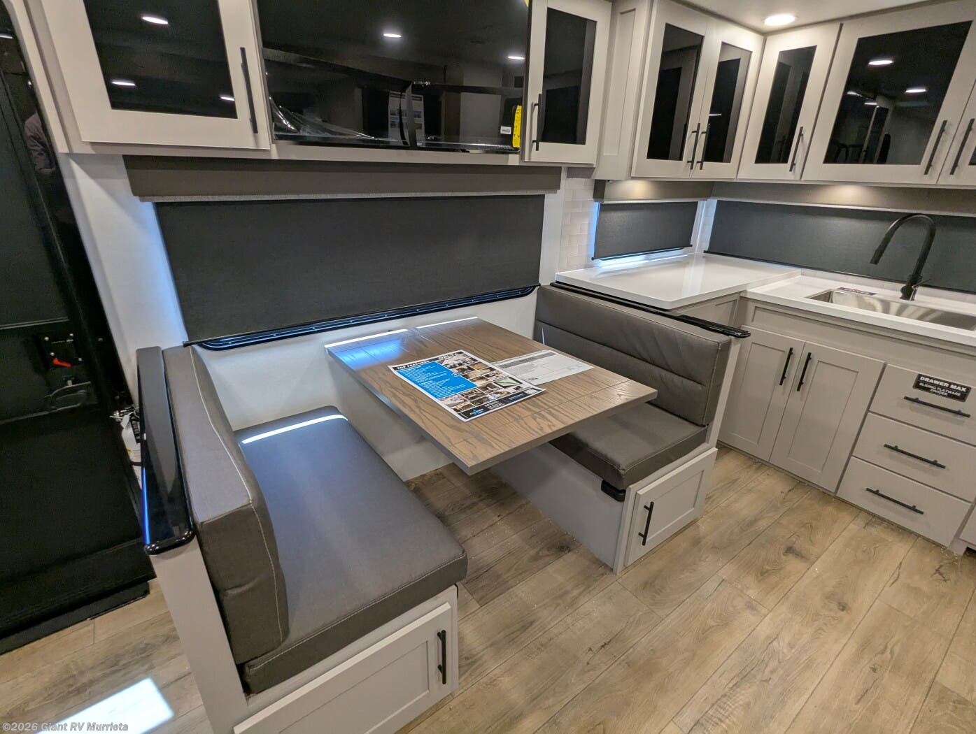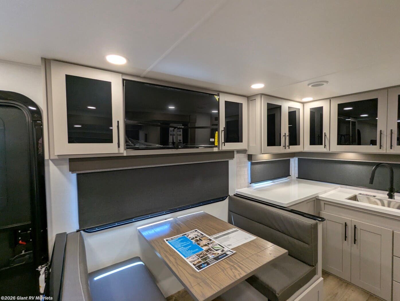 - Sleeping & Seating: Private bedroom (queen), U-shaped dinette, theater seating