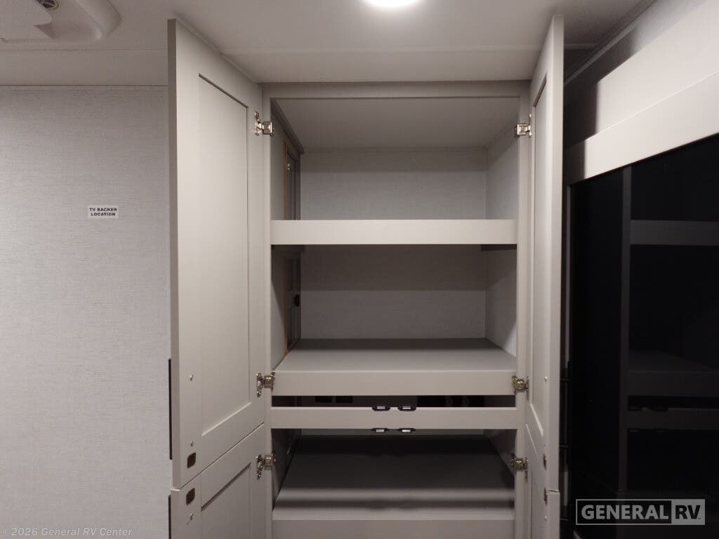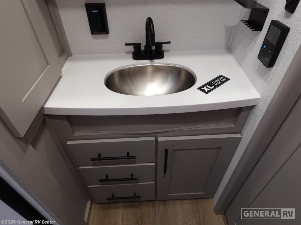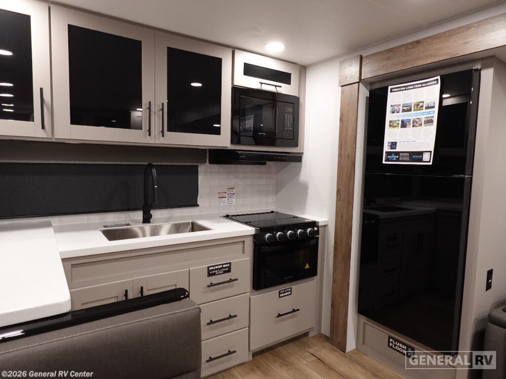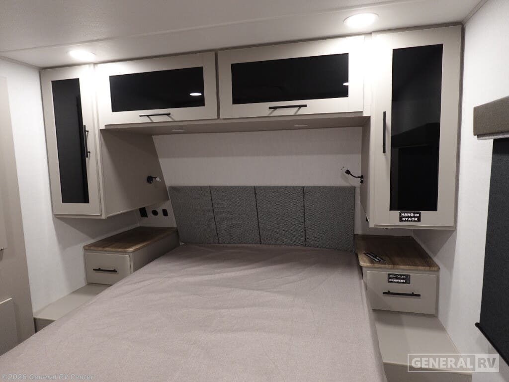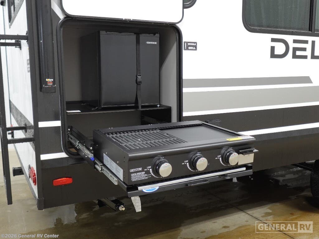 Discover the 2026 Alliance RV Delta 274RKW, a thoughtfully designed travel trailer that brings residential comfort to your outdoor adventures. This rear-kitchen model offers an exceptional layout perfect for couples or small families who appreciate both functionality and style. The innovative rear kitchen design provides wraparound counter space and modern amenities, creating a chef-friendly environment on wheels. The spacious living area features a comfortable theater seat and entertainment center with a 40" TV, making it ideal for relaxing evenings after exploring new destinations. Inside, you'll enjoy the convenience of a 10 cu. ft. 12V refrigerator and a deep sink that make meal preparation effortless. The private front bedroom features a luxurious 60" x 80" queen bed complemented by dual nightstands and a cozy fireplace at the foot of the bed. The mid-unit bathroom includes a 30" x 36" shower and convenient washer/dryer prep, adding a touch of home convenience to your travels. With smart storage solutions throughout, including a pull-out pantry and overhead cabinets, you'll have ample room for all your camping essentials. The Delta 274RKW extends your living space outdoors with a generous 19-foot awning and an outdoor griddle, perfect for enjoying meals under the stars. Whether you're weekend camping or embarking on extended journeys, this RV combines comfort, style, and practicality. For more details, visit your nearest General RV Dealership.