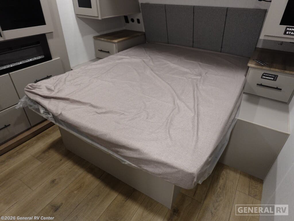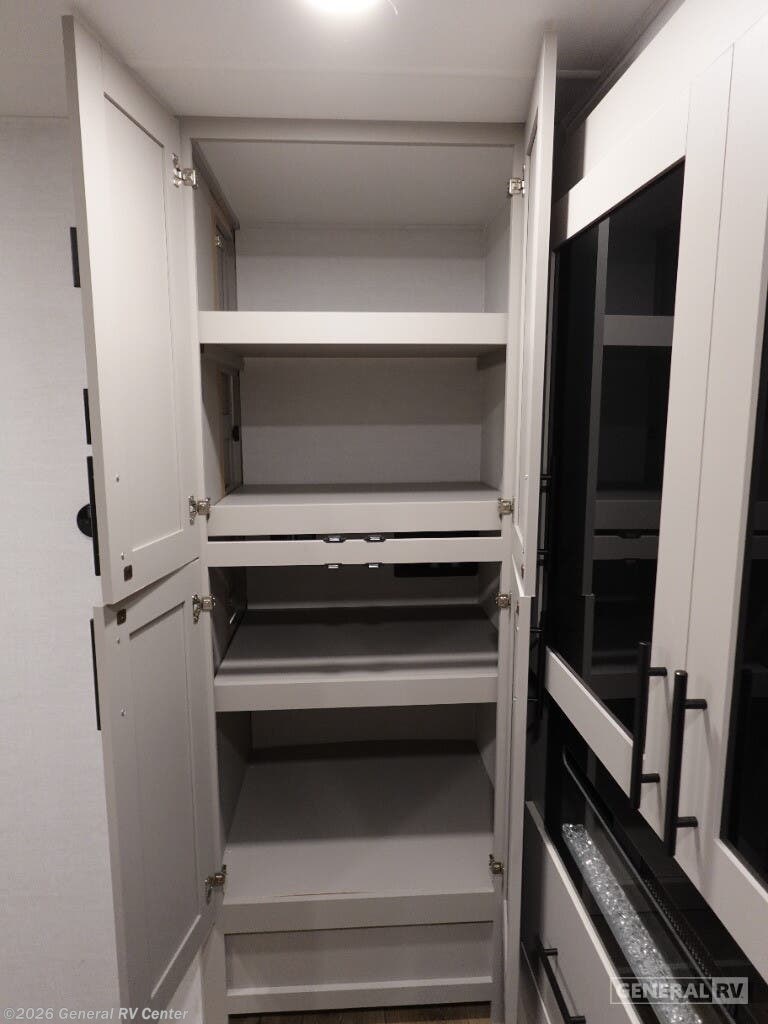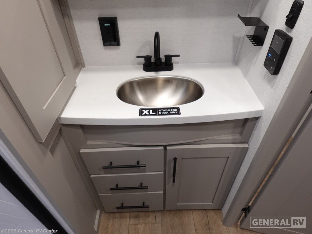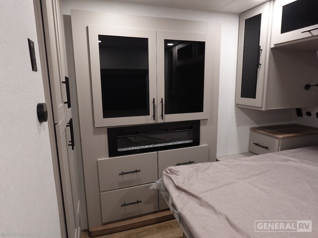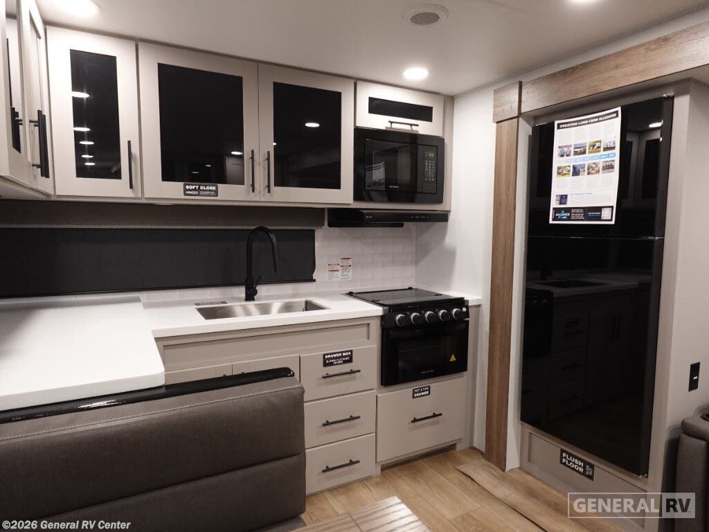 Discover the 2026 Alliance RV Delta 274RKW, a thoughtfully designed travel trailer that brings residential comfort to your outdoor adventures. This rear-kitchen model offers an exceptional layout perfect for couples or small families who appreciate both functionality and style. The innovative rear kitchen design provides wraparound counter space and modern amenities, creating a chef-friendly environment on wheels. The spacious living area features a comfortable theater seat and entertainment center with a 40" TV, making it ideal for relaxing evenings after exploring new destinations. Inside, you'll enjoy the convenience of a 10 cu. ft. 12V refrigerator and a deep sink that make meal preparation effortless. The private front bedroom features a luxurious 60" x 80" queen bed complemented by dual nightstands and a cozy fireplace at the foot of the bed. The mid-unit bathroom includes a 30" x 36" shower and convenient washer/dryer prep, adding a touch of home convenience to your travels. With smart storage solutions throughout, including a pull-out pantry and overhead cabinets, you'll have ample room for all your camping essentials. The Delta 274RKW extends your living space outdoors with a generous 19-foot awning and an outdoor griddle, perfect for enjoying meals under the stars. Whether you're weekend camping or embarking on extended journeys, this RV combines comfort, style, and practicality. For more details, visit your nearest General RV Dealership.