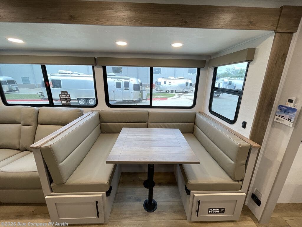 The perfect travel trailer for a larger family or one that enjoys traveling with friends! One large slide opens up the interior living space nice and features a U-shaped dinette and theater seating to provide plenty of seating for everyone. Enjoy the 40" HDTV opposite the seating for a movie indoors, and game night will be easy with everyone at the dinette which can also be converted for added sleeping if needed. The double entry doors will make loading and unloading simple and allows you to easily slip in and out of the private bedroom for a morning walk. You can easily prepare all of your favorite meals and snacks with the kitchen amenities provided inside. A three-burner range allows you to easily cook indoors, or you can enjoy cooking outside using the outdoor griddle/grill if you like. There is a 10-cu. ft. 12V refrigerator to keep all of your perishables and drinks nice and cold, plus a large sink for dishes and cleaning up, and there is also a flip-up counter extension for more prep space. You will also appreciate the rear corner bath featuring a 30" x 36" shower, vanity with sink, soft close porcelain toilet with foot flush, and linen cabinet for your towels.