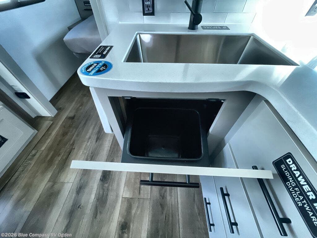 Form and function work together with every one of these Alliance RV Delta travel trailers! They are built with a walk-on roof with a seamless PVC roof covering, Mylar reinforced exterior seals, and a heated and enclosed underbelly to protect your unit. The commercial grade vinyl flooring will be easy to clean, and the oversized atrium windows throughout let in plenty of natural sunlight. With 62 cu. ft. of drop frame pass-through storage, you can bring along all of your essential camping gear plus it has USB charging for more convenience. There are many at home interior conveniences including a Bluetooth speaker, USB charging throughout, and even a pull-out kitchen trash can. Come find your favorite model today!