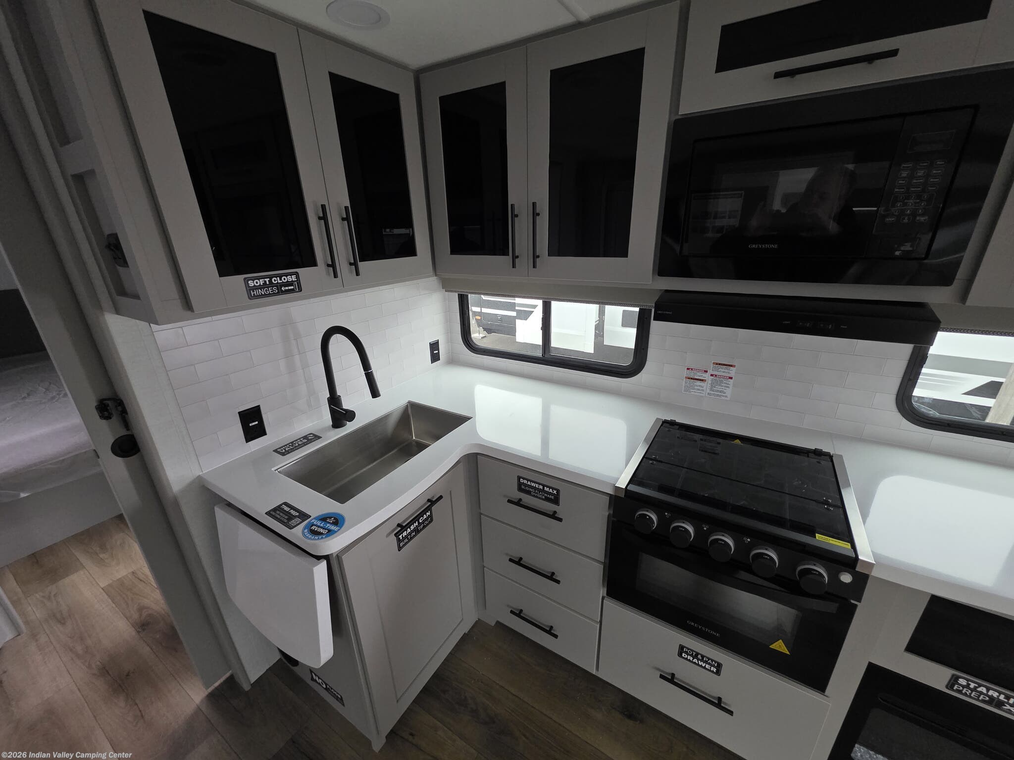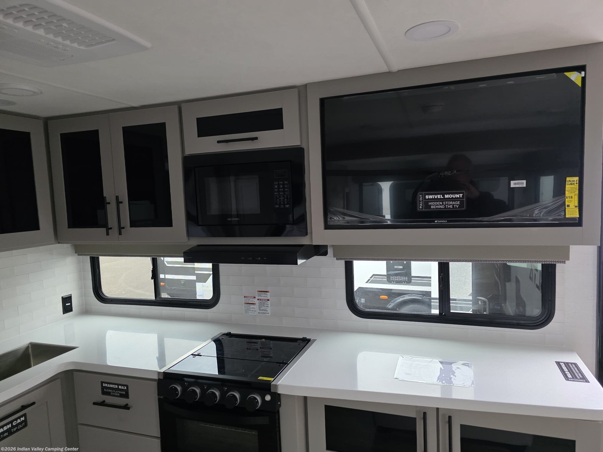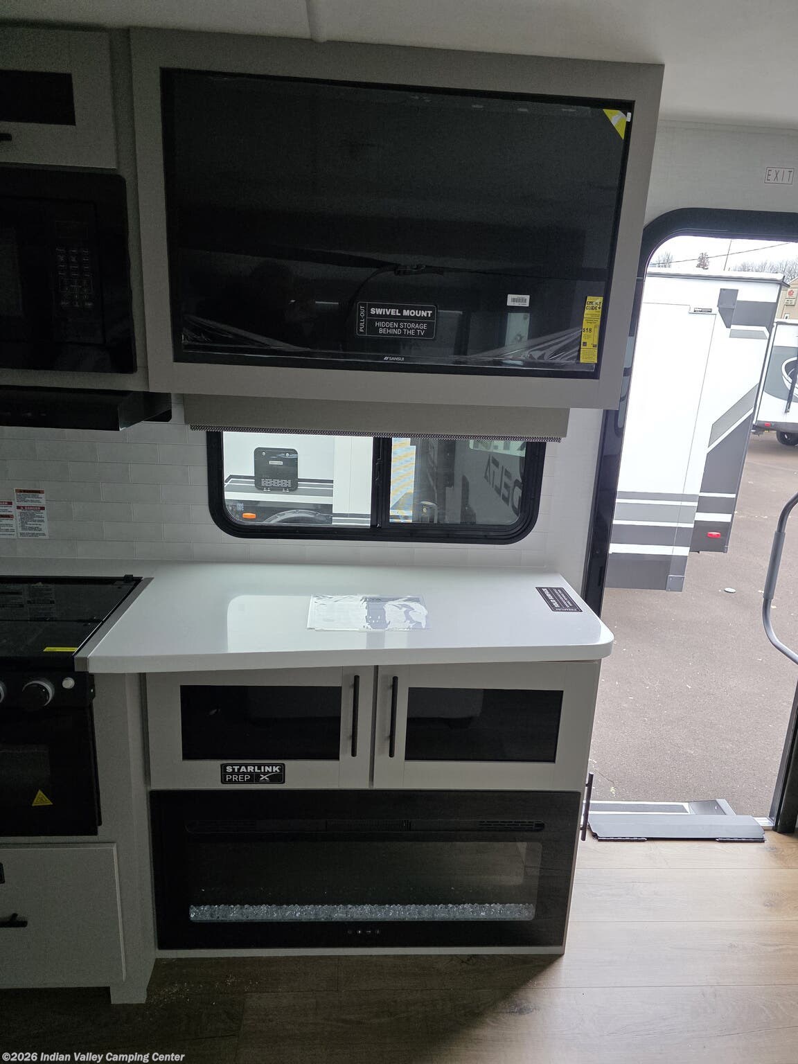 Built for reliability and convenience, this towable RV offers a thoughtful balance of living space, storage, and amenities. Its length measures 34 feet 6 inches and its height is 11 feet 3 inches, providing ample interior room while staying campground-friendly. A single slideout enhances the living area, creating an open, home-like feel without compromising structure or stability on the road.