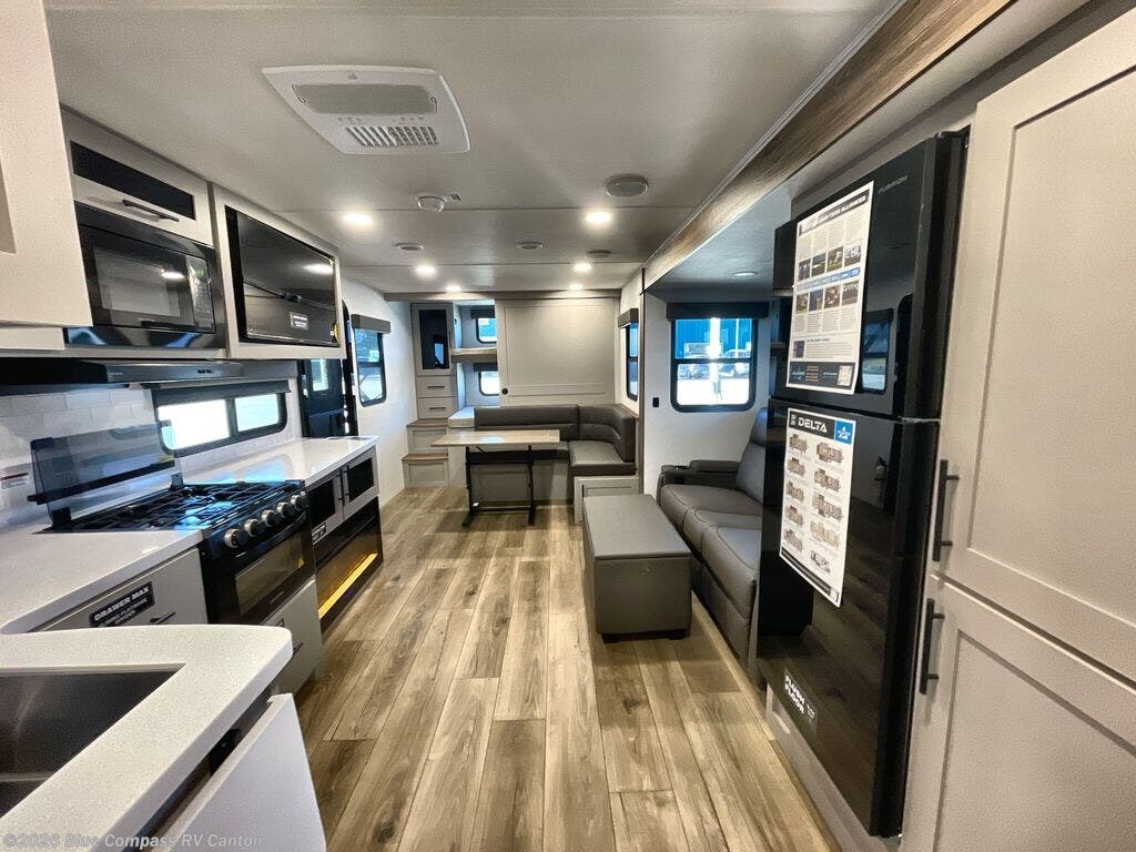 Form and function work together with every one of these Alliance RV Delta travel trailers! They are built with a walk-on roof with a seamless PVC roof covering, Mylar reinforced exterior seals, and a heated and enclosed underbelly to protect your unit. The commercial grade vinyl flooring will be easy to clean, and the oversized atrium windows throughout let in plenty of natural sunlight. With 62 cu. ft. of drop frame pass-through storage, you can bring along all of your essential camping gear plus it has USB charging for more convenience. There are many at home interior conveniences including a Bluetooth speaker, USB charging throughout, and even a pull-out kitchen trash can. Come find your favorite model today!