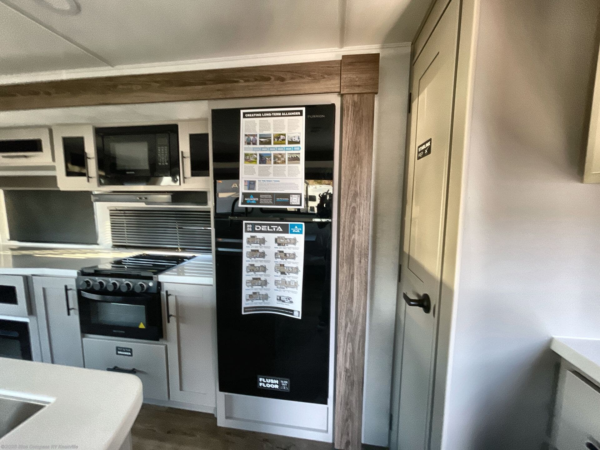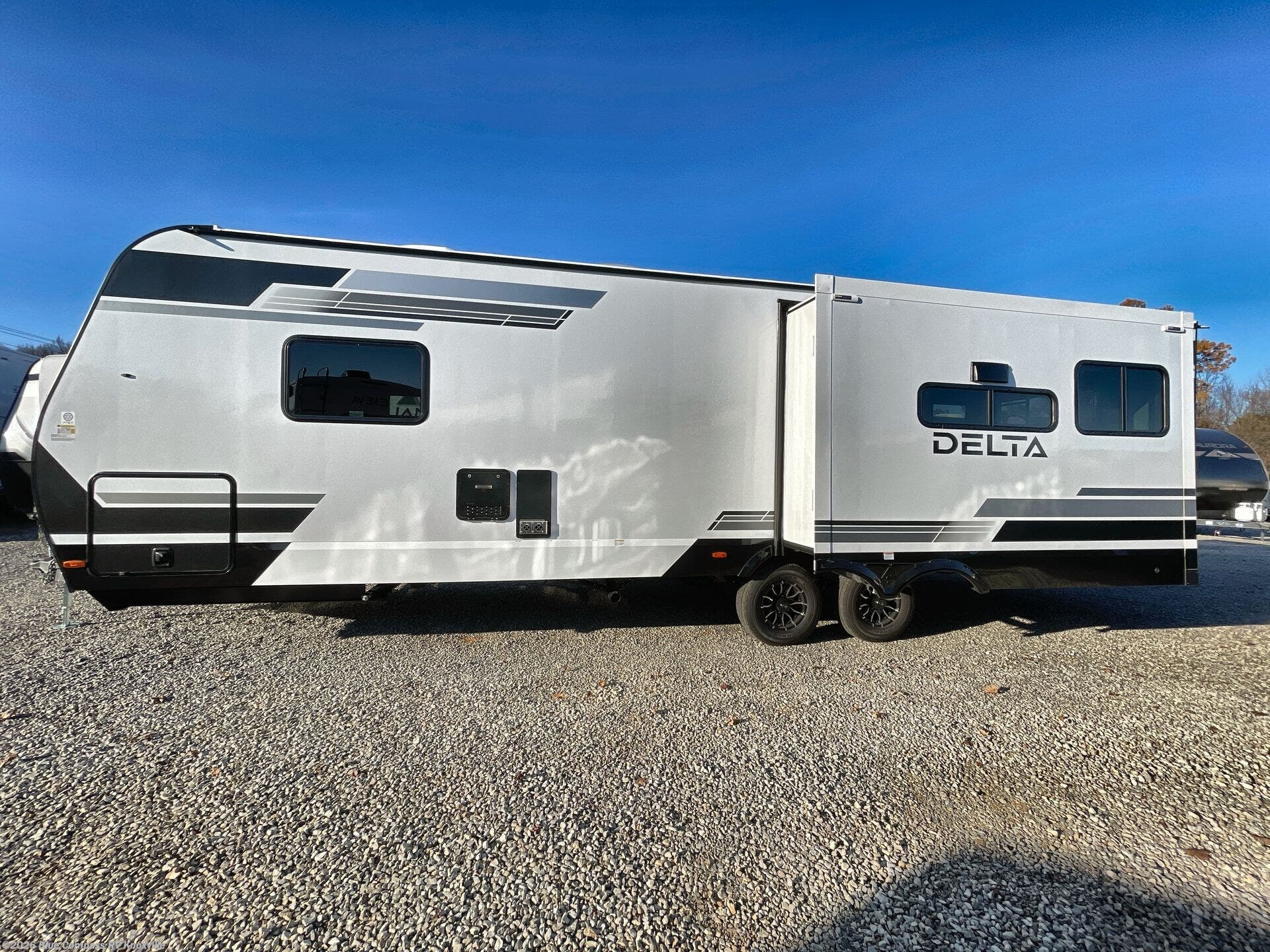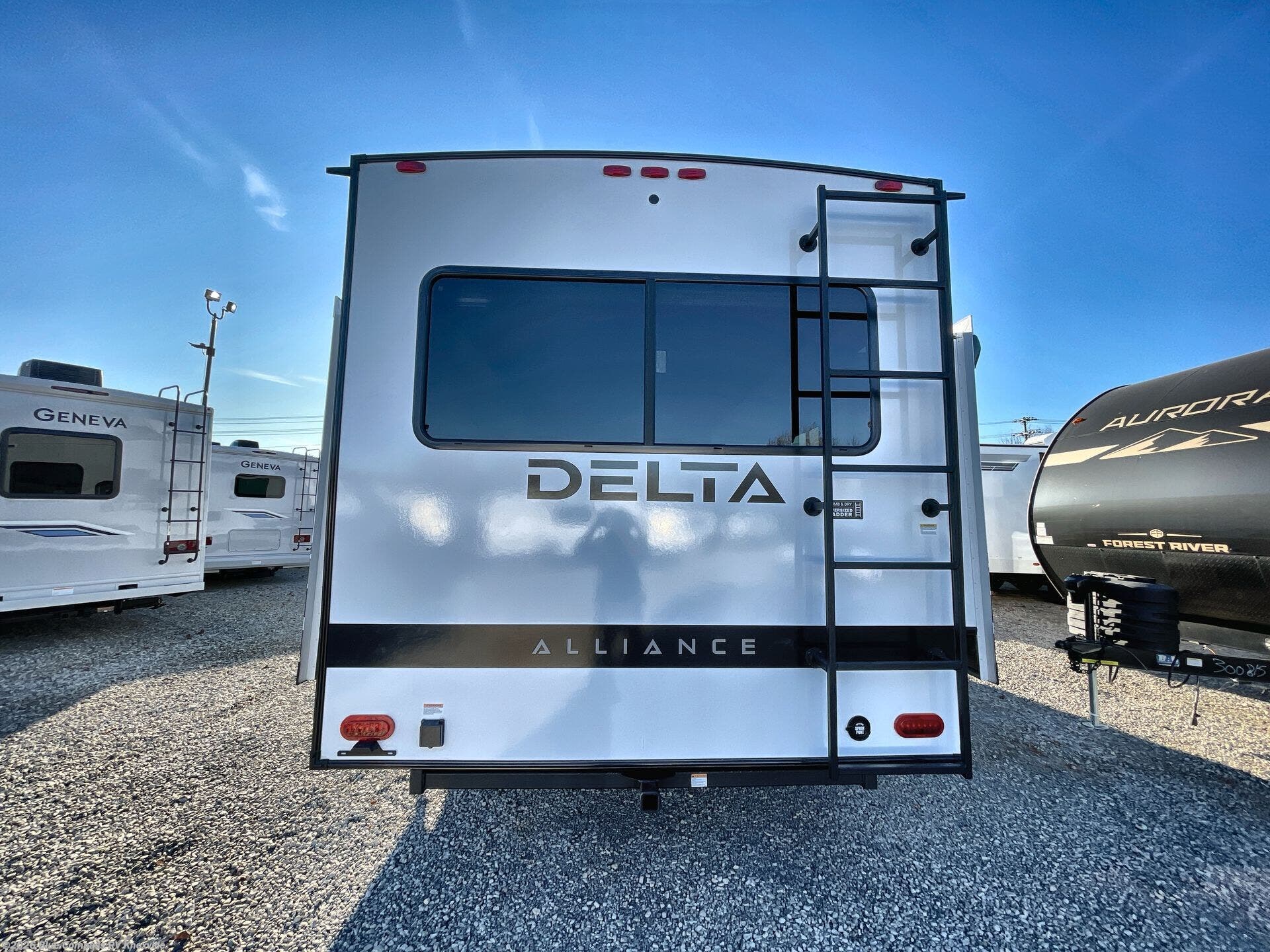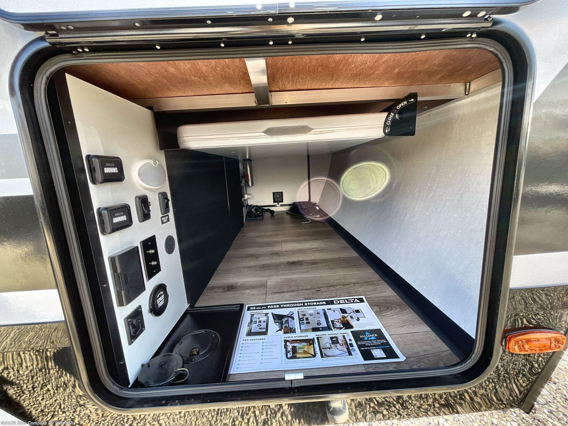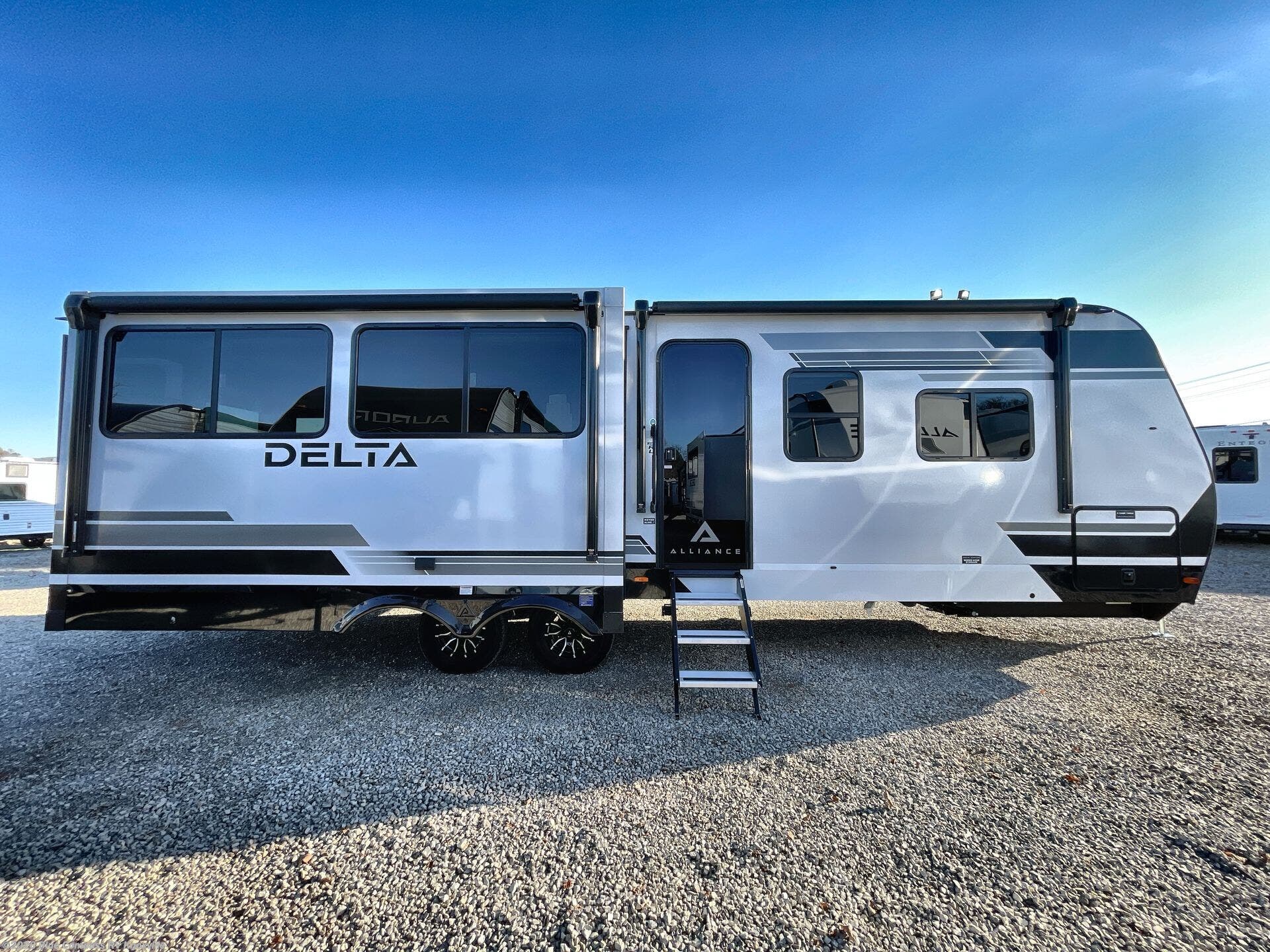 Form and function work together with every one of these Alliance RV Delta travel trailers! They are built with a walk-on roof with a seamless PVC roof covering, Mylar reinforced exterior seals, and a heated and enclosed underbelly to protect your unit. The commercial grade vinyl flooring will be easy to clean, and the oversized atrium windows throughout let in plenty of natural sunlight. With 62 cu. ft. of drop frame pass-through storage, you can bring along all of your essential camping gear plus it has USB charging for more convenience. There are many at home interior conveniences including a Bluetooth speaker, USB charging throughout, and even a pull-out kitchen trash can. Come find your favorite model today!