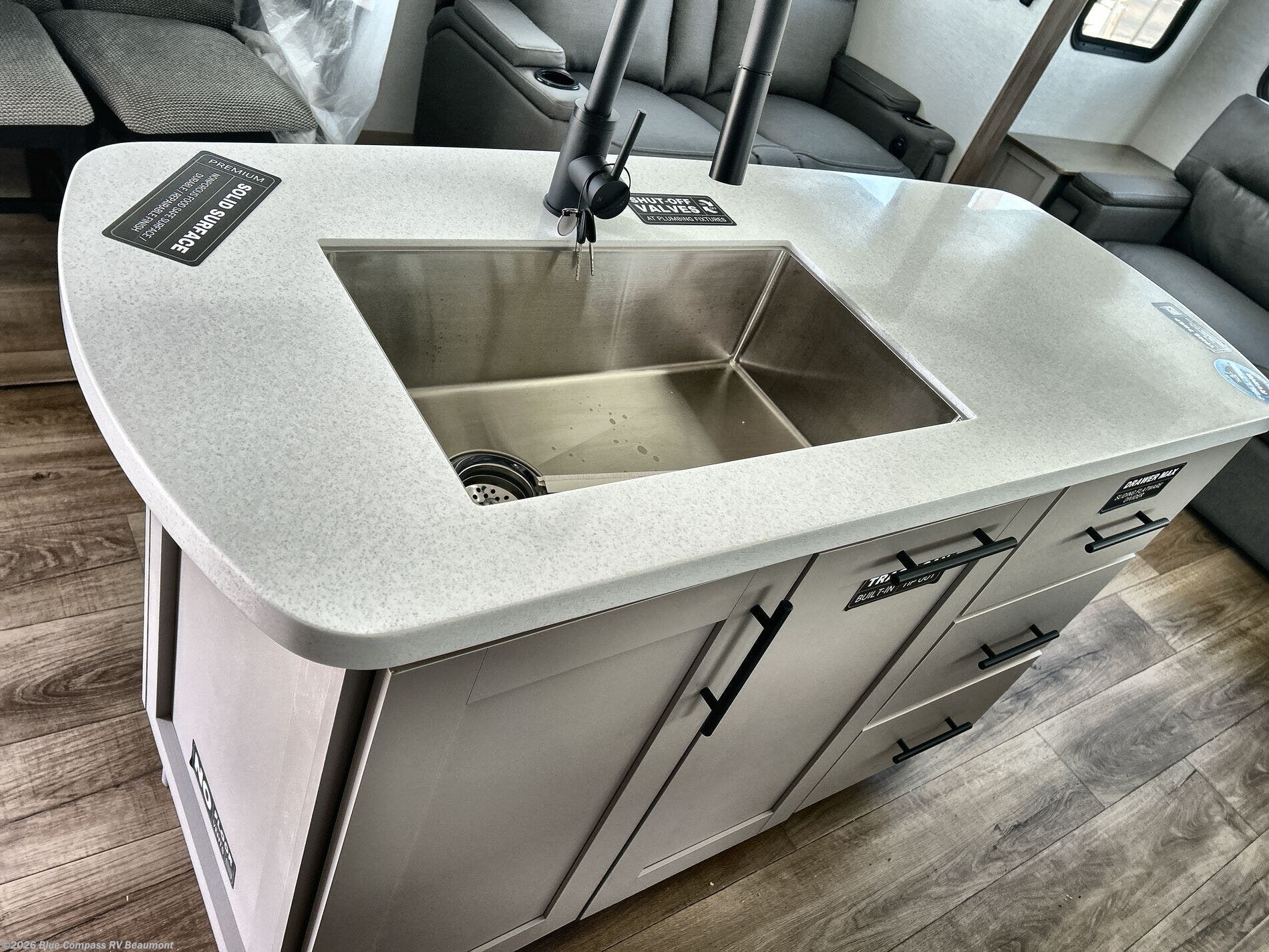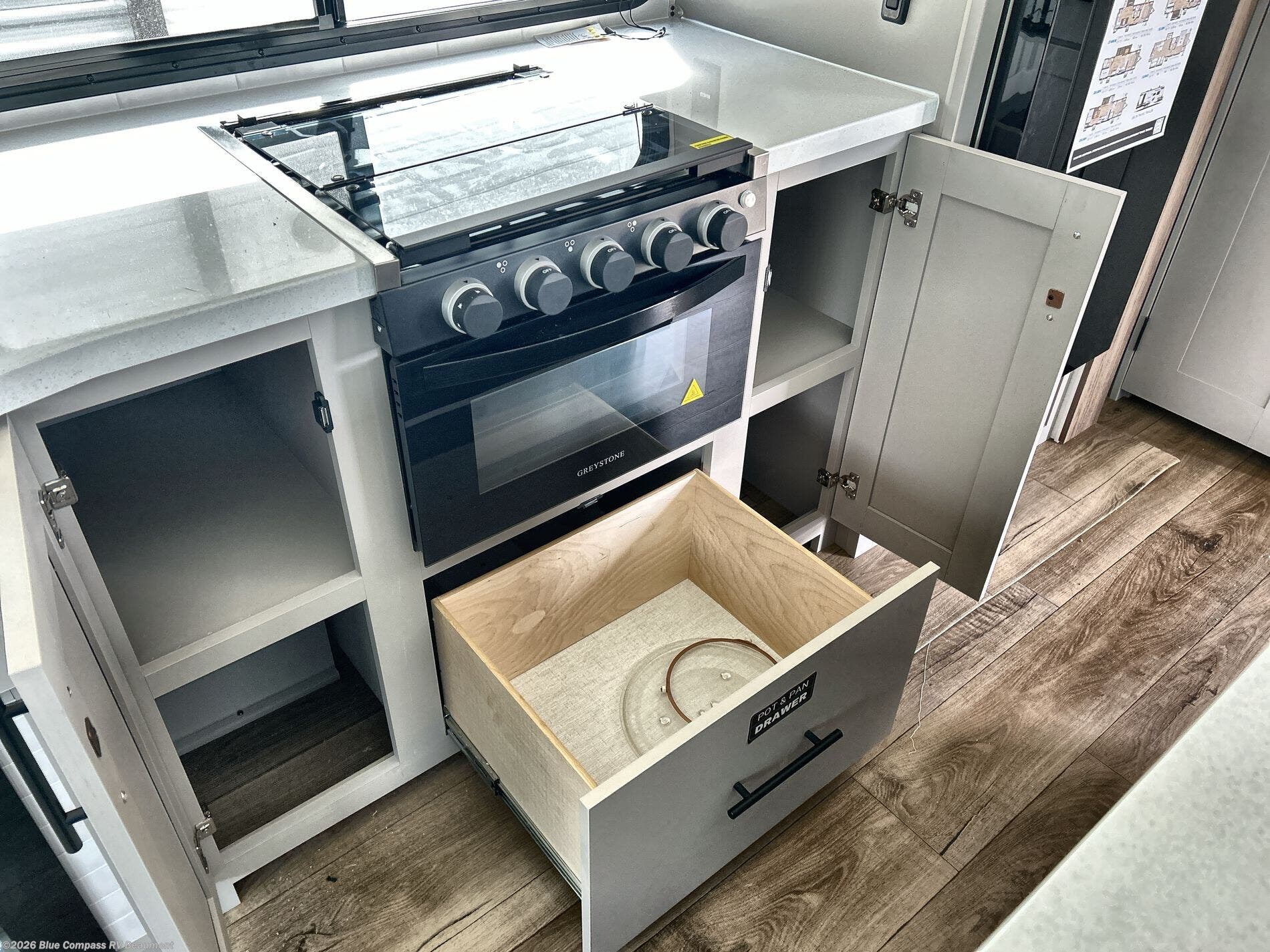 Form and function work together with every one of these Alliance RV Delta travel trailers! They are built with a walk-on roof with a seamless PVC roof covering, Mylar reinforced exterior seals, and a heated and enclosed underbelly to protect your unit. The commercial grade vinyl flooring will be easy to clean, and the oversized atrium windows throughout let in plenty of natural sunlight. With 62 cu. ft. of drop frame pass-through storage, you can bring along all of your essential camping gear plus it has USB charging for more convenience. There are many at home interior conveniences including a Bluetooth speaker, USB charging throughout, and even a pull-out kitchen trash can. Come find your favorite model today!