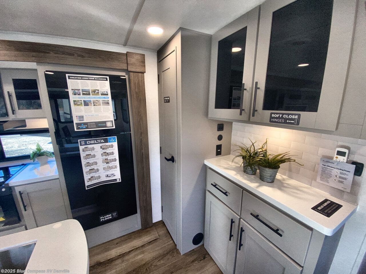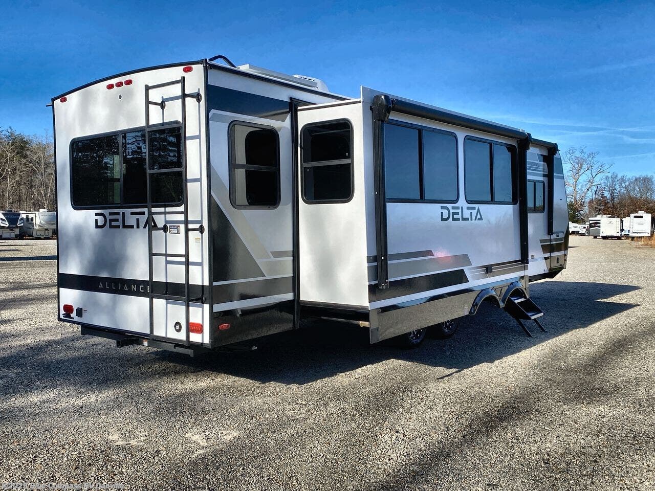 Form and function work together with every one of these Alliance RV Delta travel trailers! They are built with a walk-on roof with a seamless PVC roof covering, Mylar reinforced exterior seals, and a heated and enclosed underbelly to protect your unit. The commercial grade vinyl flooring will be easy to clean, and the oversized atrium windows throughout let in plenty of natural sunlight. With 62 cu. ft. of drop frame pass-through storage, you can bring along all of your essential camping gear plus it has USB charging for more convenience. There are many at home interior conveniences including a Bluetooth speaker, USB charging throughout, and even a pull-out kitchen trash can. Come find your favorite model today!