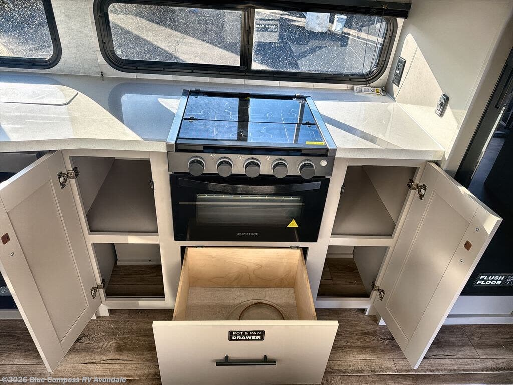 Form and function work together with every one of these Alliance RV Delta travel trailers! They are built with a walk-on roof with a seamless PVC roof covering, Mylar reinforced exterior seals, and a heated and enclosed underbelly to protect your unit. The commercial grade vinyl flooring will be easy to clean, and the oversized atrium windows throughout let in plenty of natural sunlight. With 62 cu. ft. of drop frame pass-through storage, you can bring along all of your essential camping gear plus it has USB charging for more convenience. There are many at home interior conveniences including a Bluetooth speaker, USB charging throughout, and even a pull-out kitchen trash can. Come find your favorite model today!