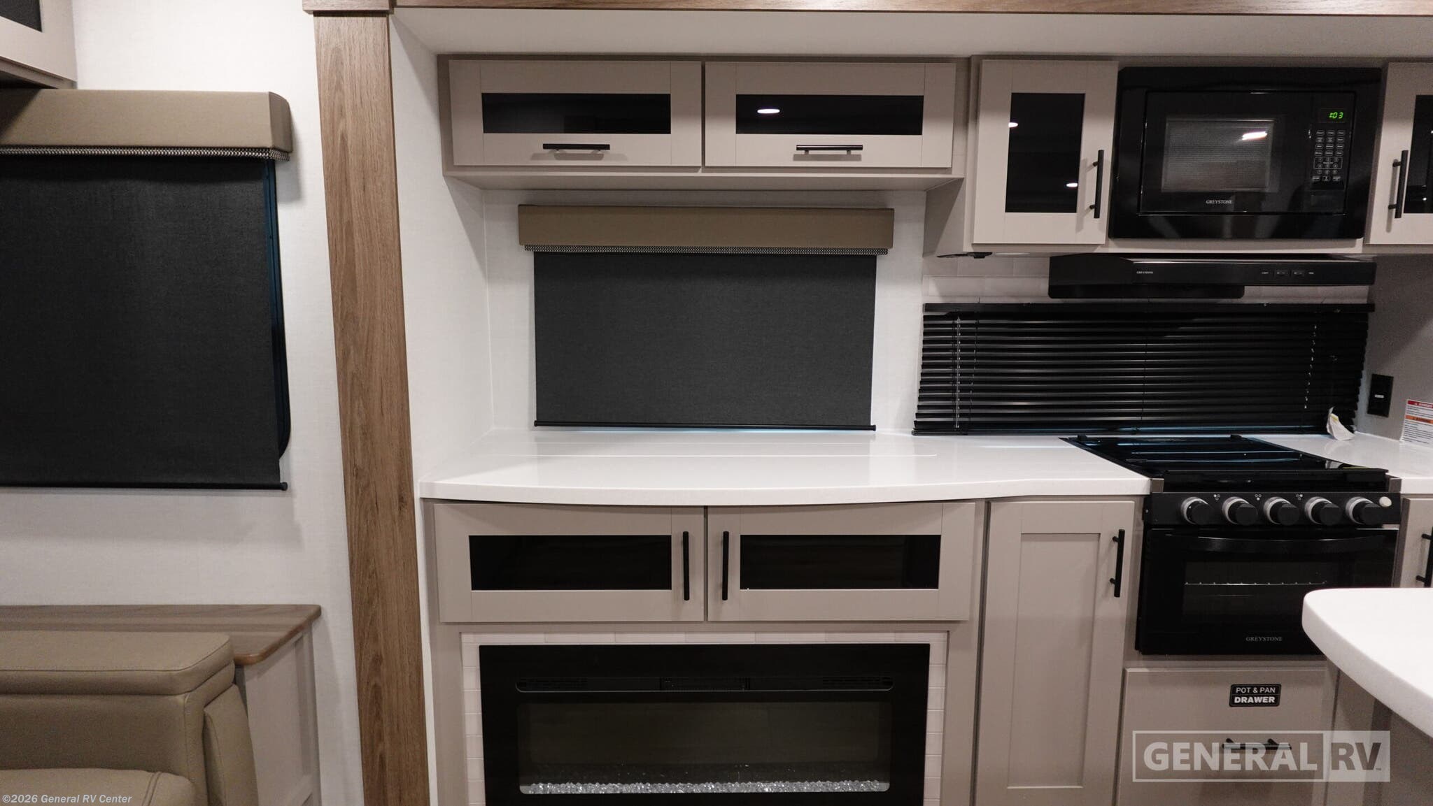 Discover the 2026 Alliance RV Delta 292RL, where luxury meets practicality in a beautifully designed space. This fifth wheel is perfect for families or groups, offering comfortable sleeping arrangements for up to six people with a cozy queen bed and two convertible options. The rear living area invites relaxation with plush seating and a 50" class HDTV, making it the ideal spot for movie nights or entertaining friends. The pull-out fireplace adds a touch of warmth and ambiance, ensuring comfort no matter the weather. The center kitchen is a culinary delight, equipped with a full-size electric refrigerator, a three-burner cooktop, and ample pantry space, making meal prep a breeze. The center bath features a 30"x36" shower with a curtain, providing a private retreat for refreshing yourself after a day of adventure. With a generous 21-foot powered retractable awning, you can extend your living space outdoors, perfect for enjoying the fresh air or hosting a barbecue. The Delta 292RL combines thoughtful design with high-end features, creating a home away from home that you'll never want to leave. For more details or to see this incredible RV in person, visit your nearest General RV dealership.