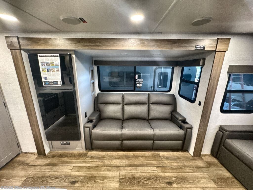 Form and function works together with every one of these Alliance RV Delta travel trailers! They are built with a walk-on roof with a seamless PVC roof covering, Mylar reinforced exterior seals, and a heated and enclosed underbelly to protect your unit in all seasons. The commercial grade vinyl flooring will be easy to clean and the oversized atrium windows throughout let in plenty of natural sunlight. With 62 cu. ft. of drop frame pass-through storage, you can bring along all of your essential camping gear plus it has USB charging for more convenience. There are many at home interior conveniences including a Bluetooth speaker, USB charging throughout, and even a pull-out kitchen trash can. Come find your favorite model today!
