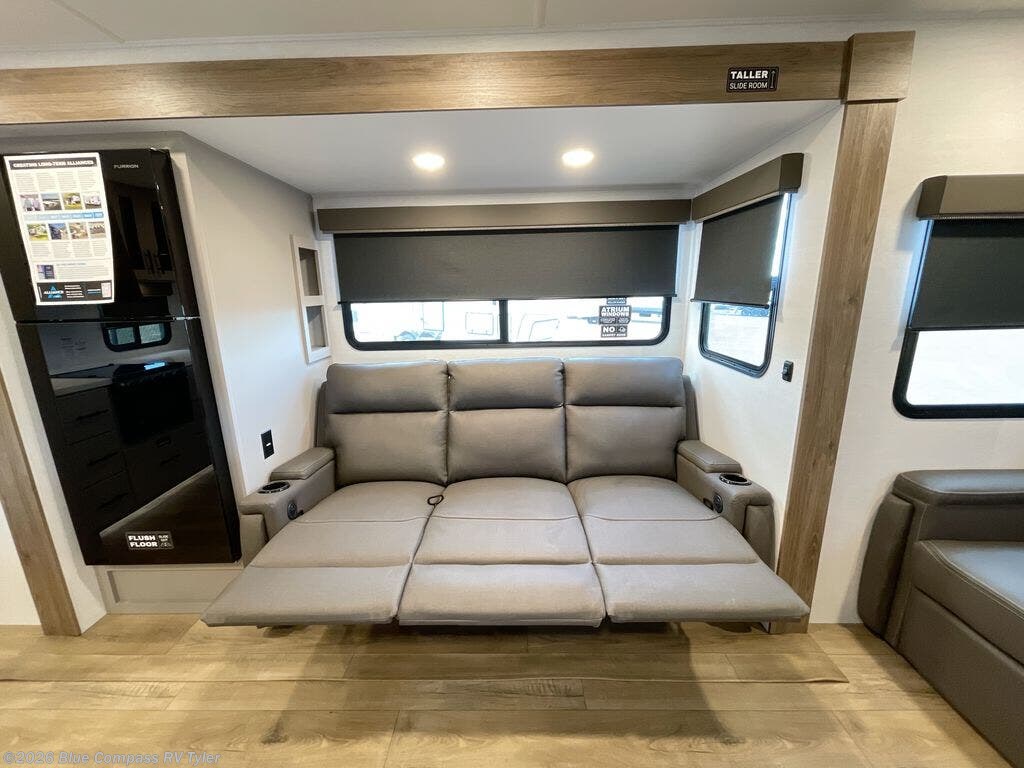 Form and function works together with every one of these Alliance RV Delta travel trailers! They are built with a walk-on roof with a seamless PVC roof covering, Mylar reinforced exterior seals, and a heated and enclosed underbelly to protect your unit in all seasons. The commercial grade vinyl flooring will be easy to clean and the oversized atrium windows throughout let in plenty of natural sunlight. With 62 cu. ft. of drop frame pass-through storage, you can bring along all of your essential camping gear plus it has USB charging for more convenience. There are many at home interior conveniences including a Bluetooth speaker, USB charging throughout, and even a pull-out kitchen trash can. Come find your favorite model today!