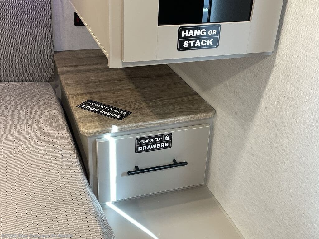Form and function works together with every one of these Alliance RV Delta travel trailers! They are built with a walk-on roof with a seamless PVC roof covering, Mylar reinforced exterior seals, and a heated and enclosed underbelly to protect your unit in all seasons. The commercial grade vinyl flooring will be easy to clean and the oversized atrium windows throughout let in plenty of natural sunlight. With 62 cu. ft. of drop frame pass-through storage, you can bring along all of your essential camping gear plus it has USB charging for more convenience. There are many at home interior conveniences including a Bluetooth speaker, USB charging throughout, and even a pull-out kitchen trash can. Come find your favorite model today!