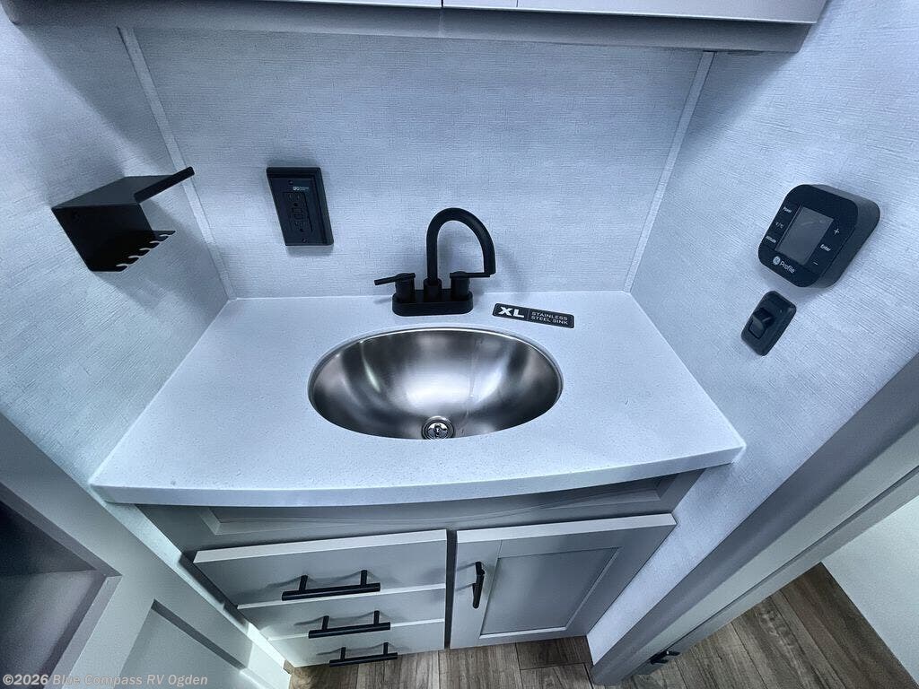 Form and function work together with every one of these Alliance RV Delta travel trailers! They are built with a walk-on roof with a seamless PVC roof covering, Mylar reinforced exterior seals, and a heated and enclosed underbelly to protect your unit. The commercial grade vinyl flooring will be easy to clean, and the oversized atrium windows throughout let in plenty of natural sunlight. With 62 cu. ft. of drop frame pass-through storage, you can bring along all of your essential camping gear plus it has USB charging for more convenience. There are many at home interior conveniences including a Bluetooth speaker, USB charging throughout, and even a pull-out kitchen trash can. Come find your favorite model today!