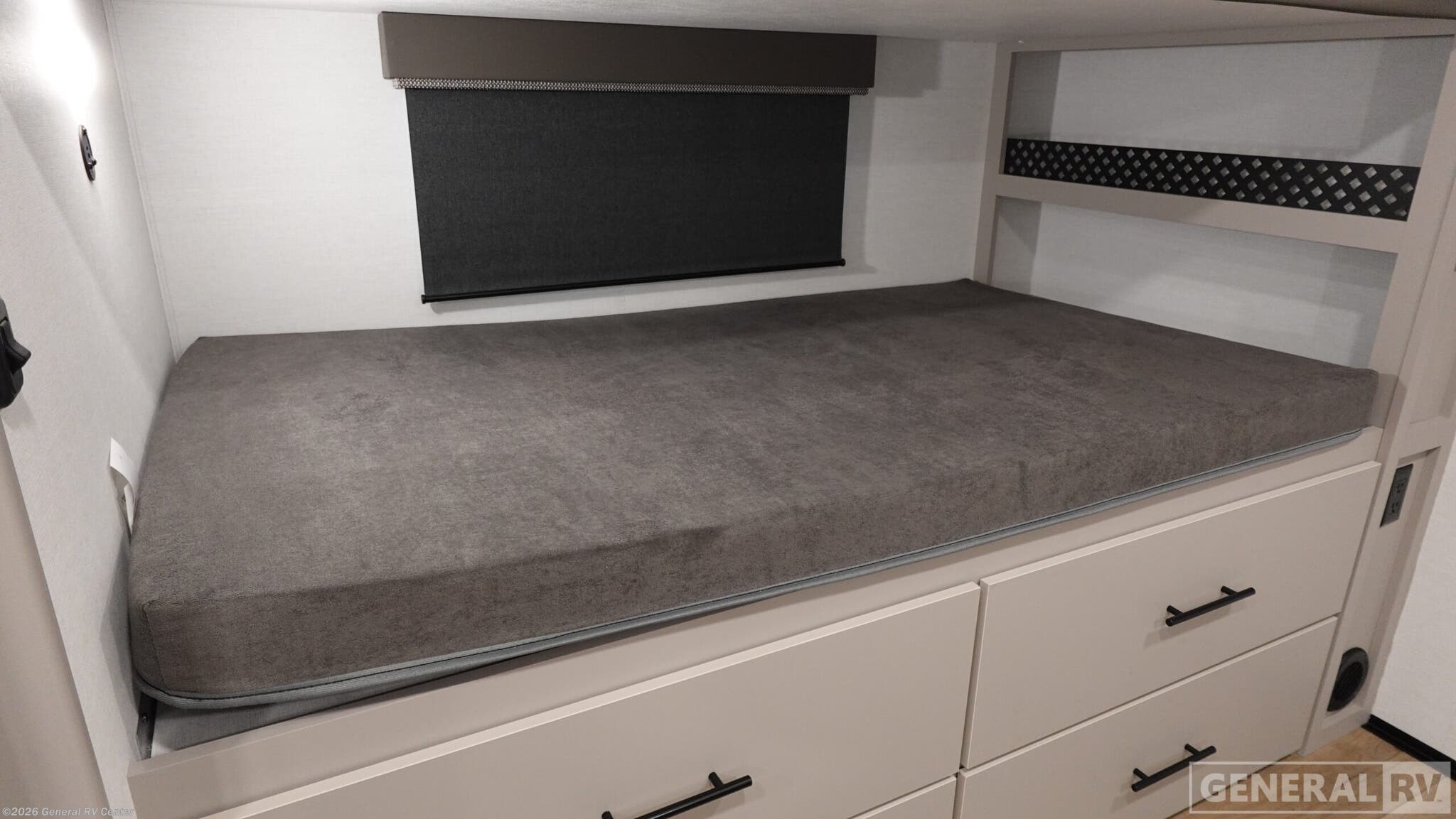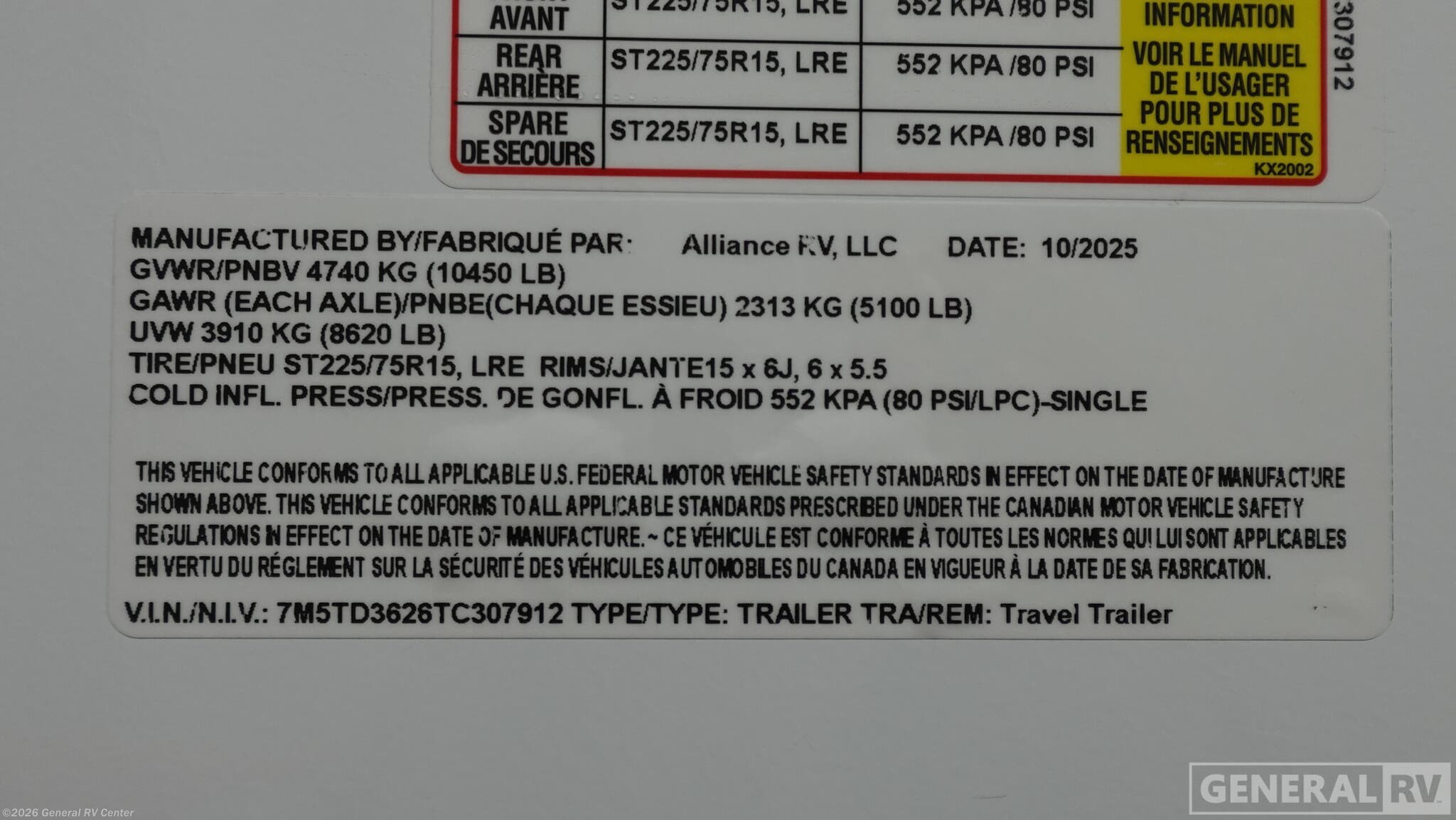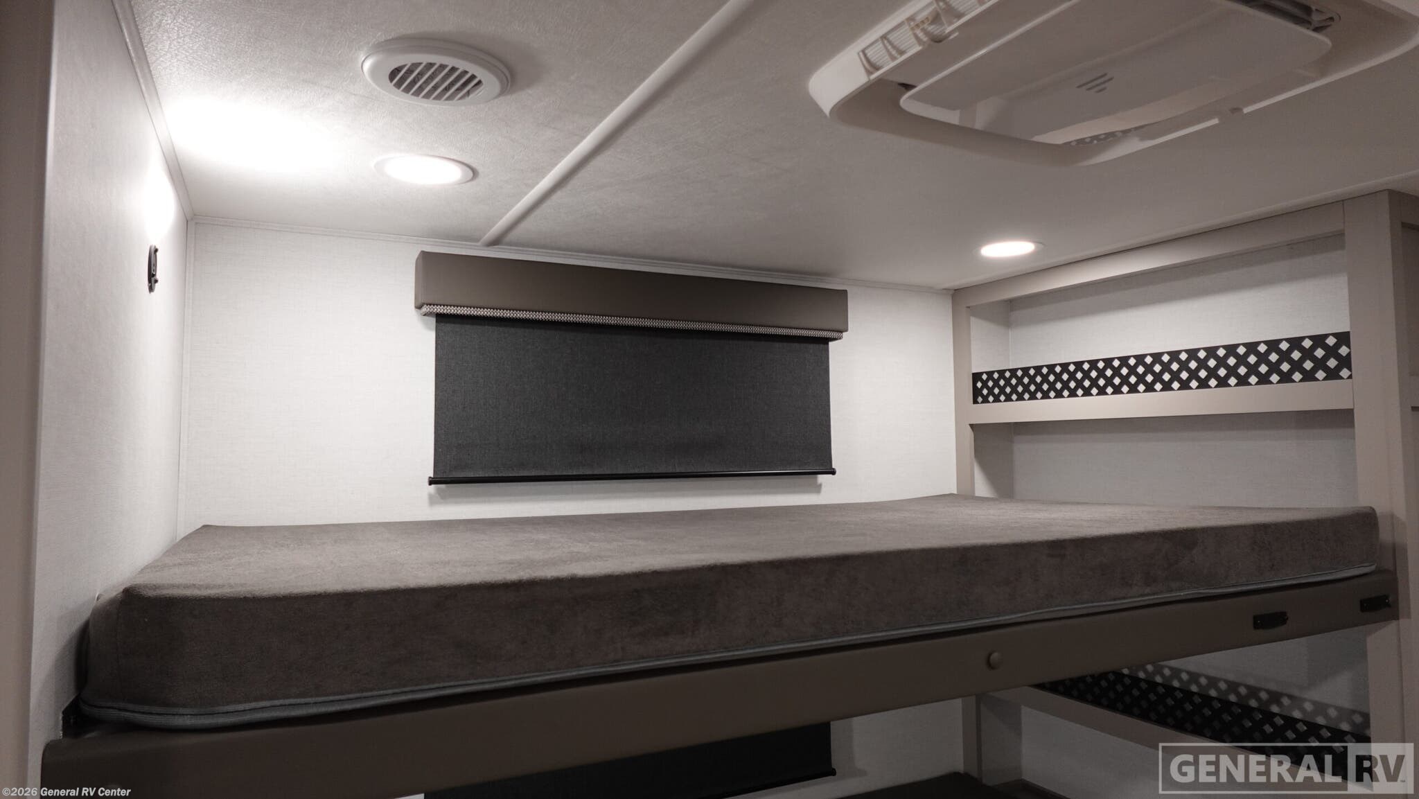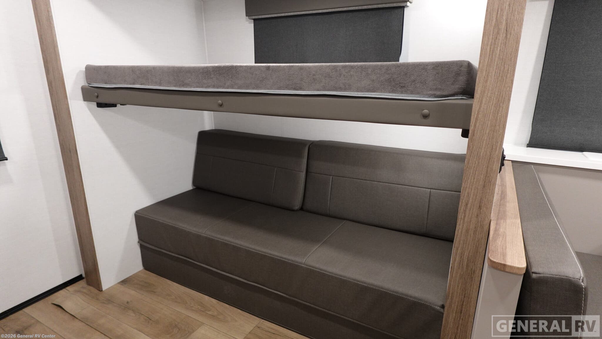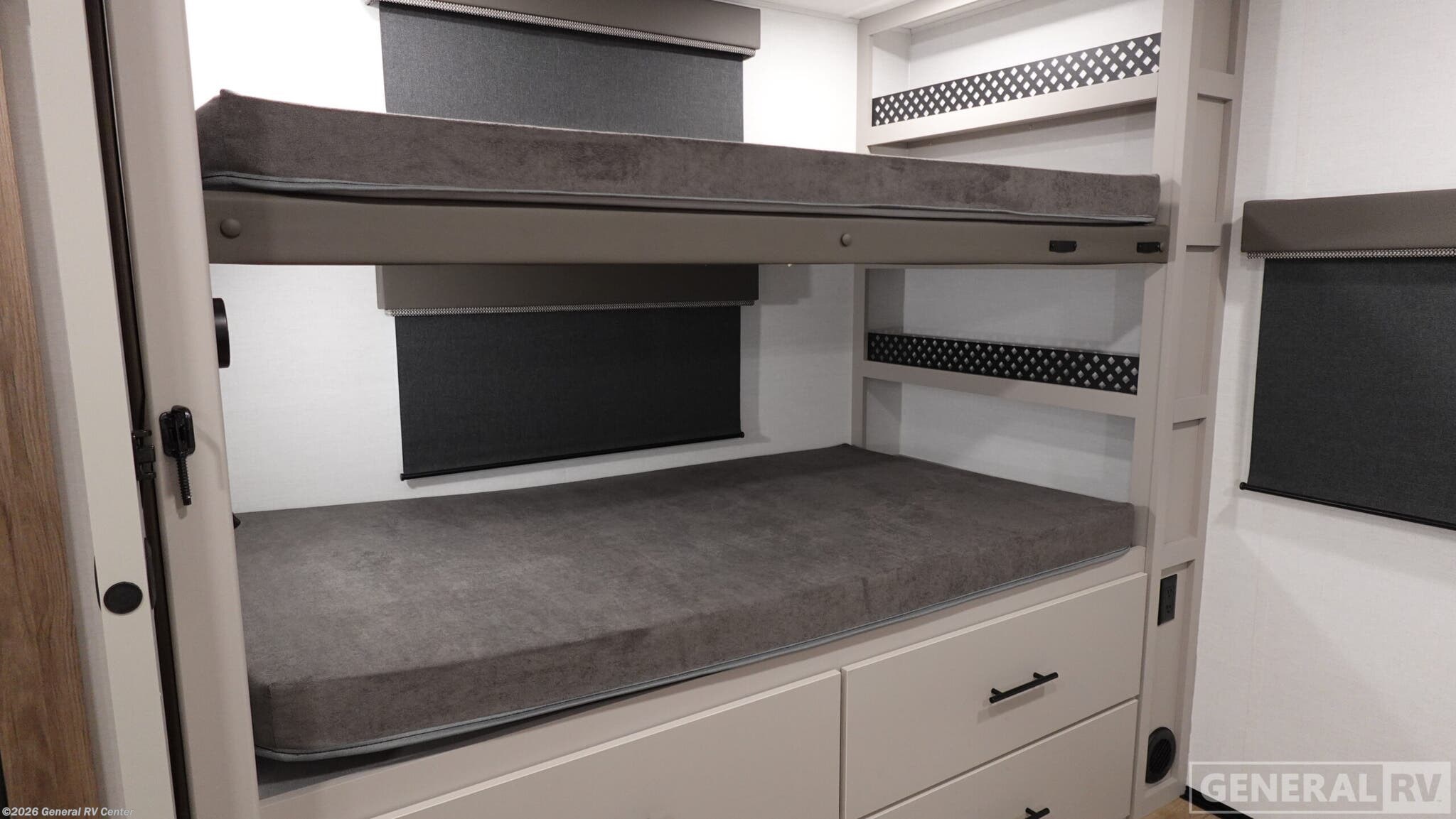 Experience the perfect blend of comfort and adventure with the 2026 Alliance RV Delta 321BH. This impressive travel trailer is designed to accommodate up to ten guests, making it ideal for families and friends ready to explore the open road. The spacious interior features a queen bed and three convertible beds, along with a cozy bunkhouse that promises restful nights for everyone. The center kitchen and living area are thoughtfully arranged to maximize space and functionality, featuring a full-size electric refrigerator and a three-burner cooktop, perfect for preparing delicious meals on the go. The Delta 321BH's design emphasizes convenience and relaxation. With two powered retractable awnings extending over 20 feet, you can enjoy the great outdoors in comfort and style. The center bath features a practical shower with a curtain, offering privacy and ease of use. Storage is abundant, with overhead compartments and wardrobes ensuring you have room for all your essentials. Measuring just under 37 feet in length, this RV combines maneuverability with ample living space, making it a versatile choice for both short getaways and extended trips. For more information or to see it in person, visit your nearest General RV dealership.
