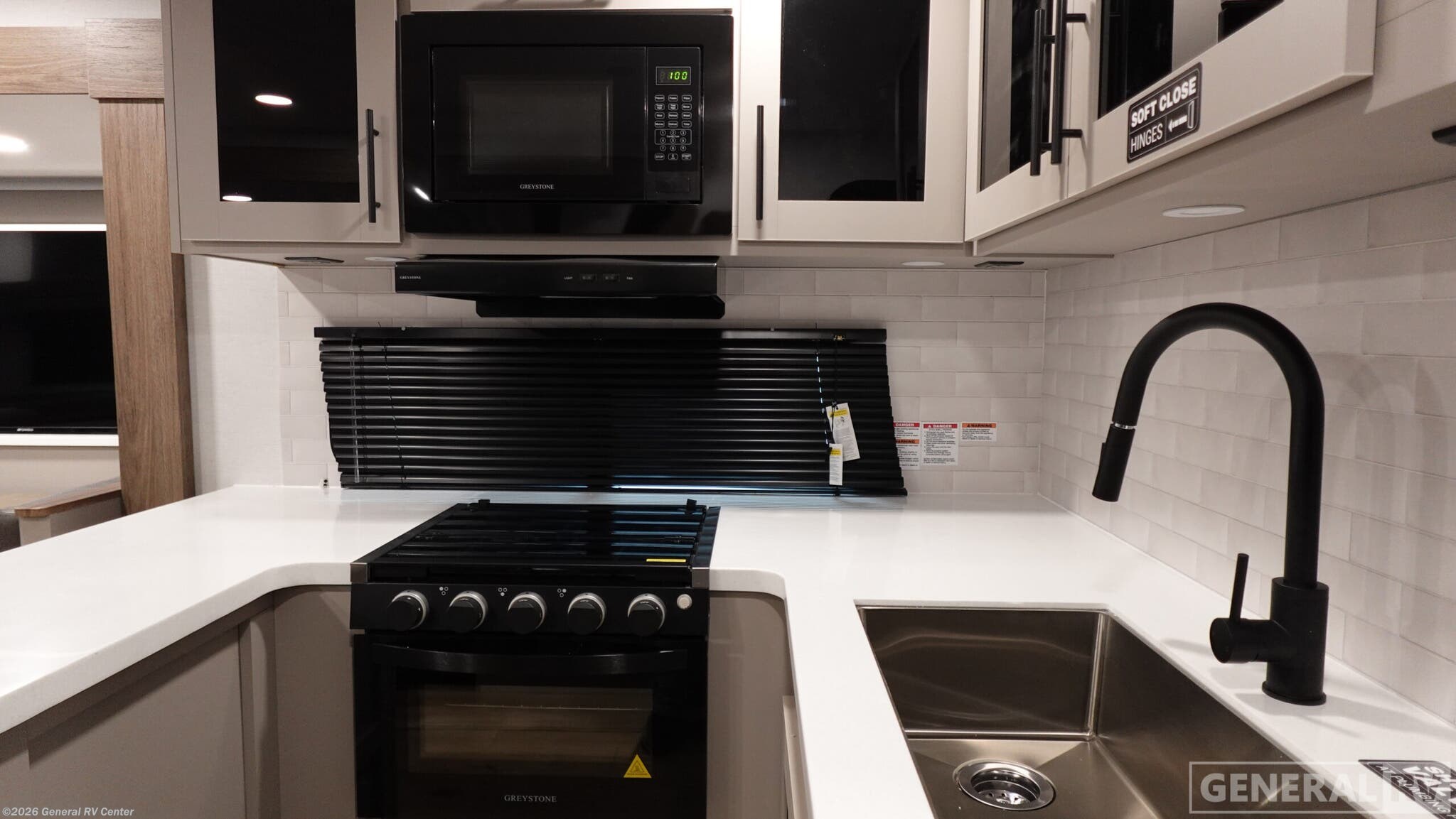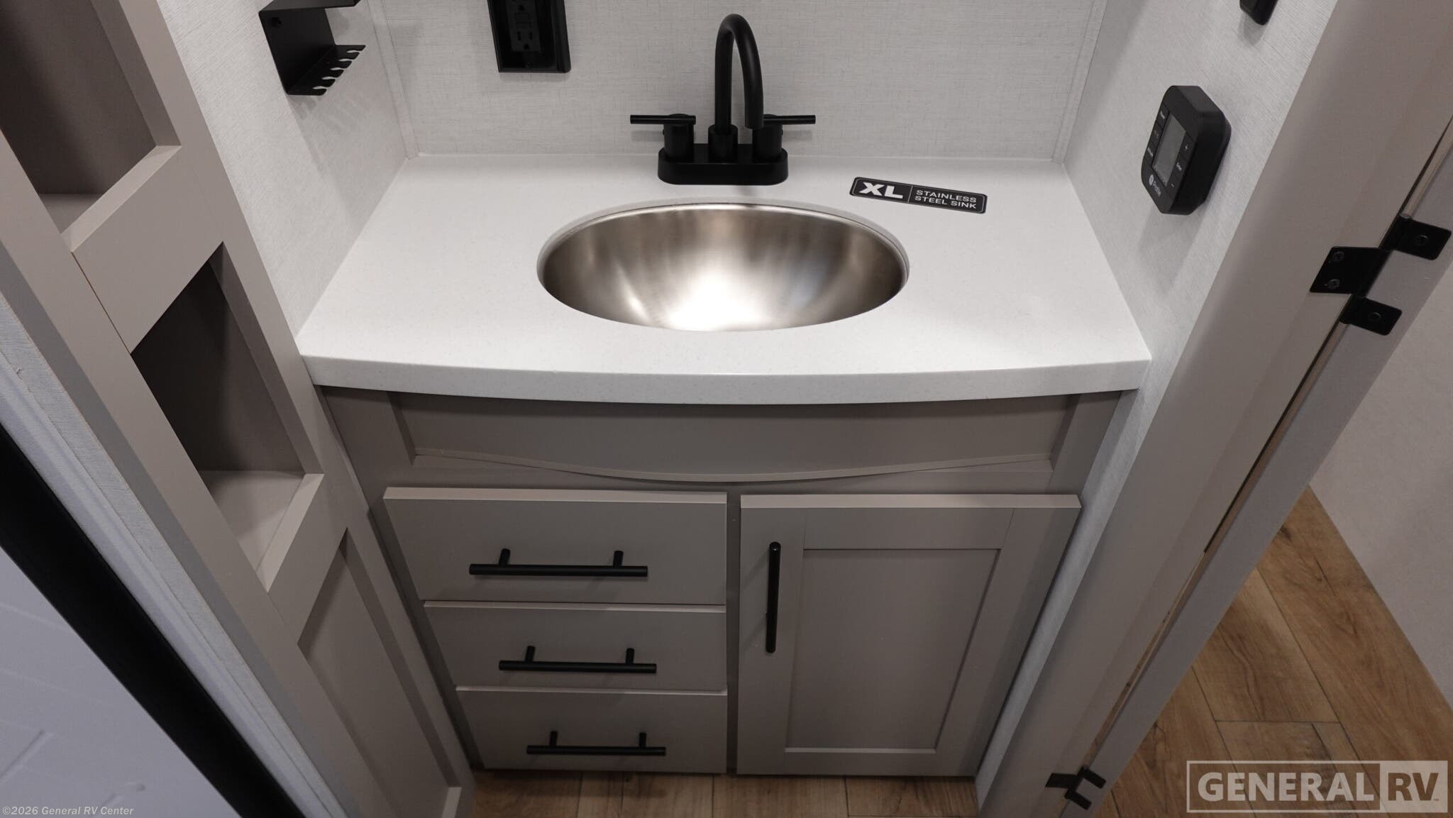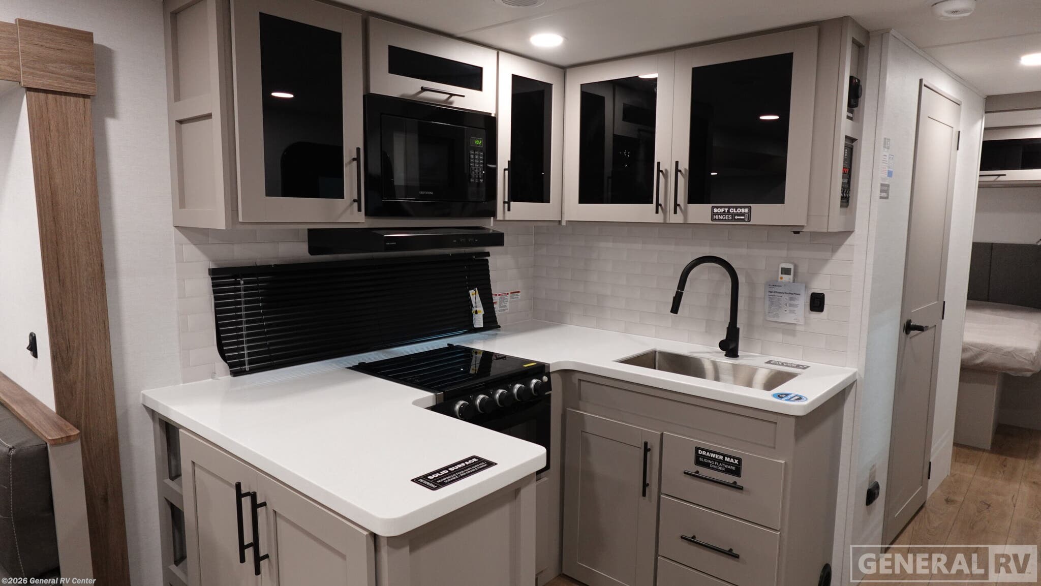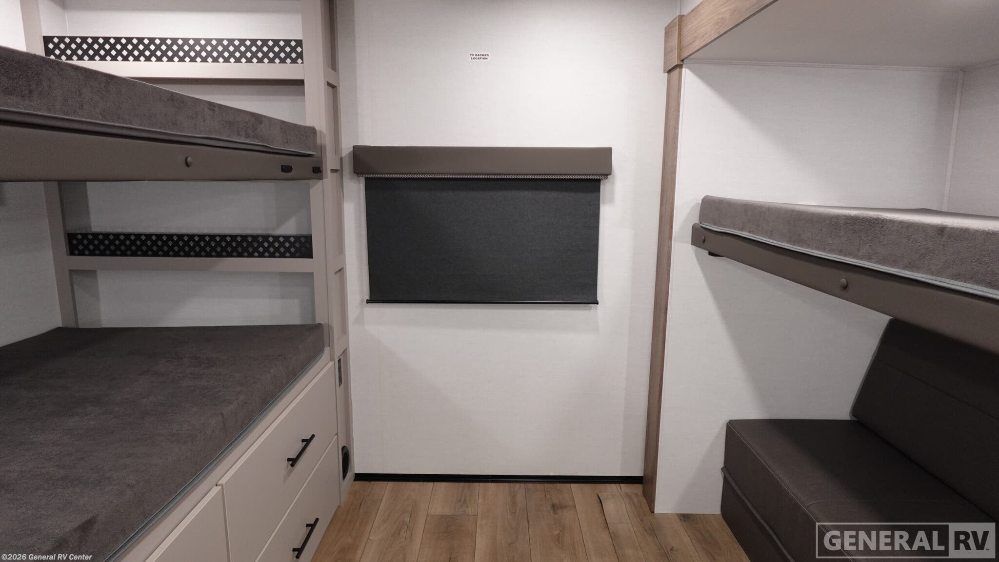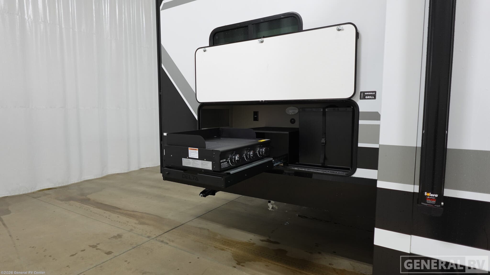Experience the perfect blend of comfort and adventure with the 2026 Alliance RV Delta 321BH. This impressive travel trailer is designed to accommodate up to ten guests, making it ideal for families and friends ready to explore the open road. The spacious interior features a queen bed and three convertible beds, along with a cozy bunkhouse that promises restful nights for everyone. The center kitchen and living area are thoughtfully arranged to maximize space and functionality, featuring a full-size electric refrigerator and a three-burner cooktop, perfect for preparing delicious meals on the go. The Delta 321BH's design emphasizes convenience and relaxation. With two powered retractable awnings extending over 20 feet, you can enjoy the great outdoors in comfort and style. The center bath features a practical shower with a curtain, offering privacy and ease of use. Storage is abundant, with overhead compartments and wardrobes ensuring you have room for all your essentials. Measuring just under 37 feet in length, this RV combines maneuverability with ample living space, making it a versatile choice for both short getaways and extended trips. For more information or to see it in person, visit your nearest General RV dealership.