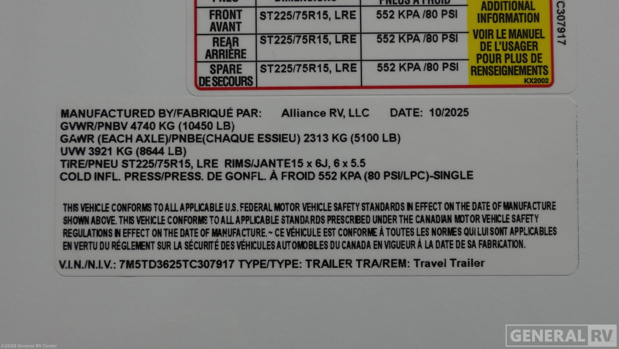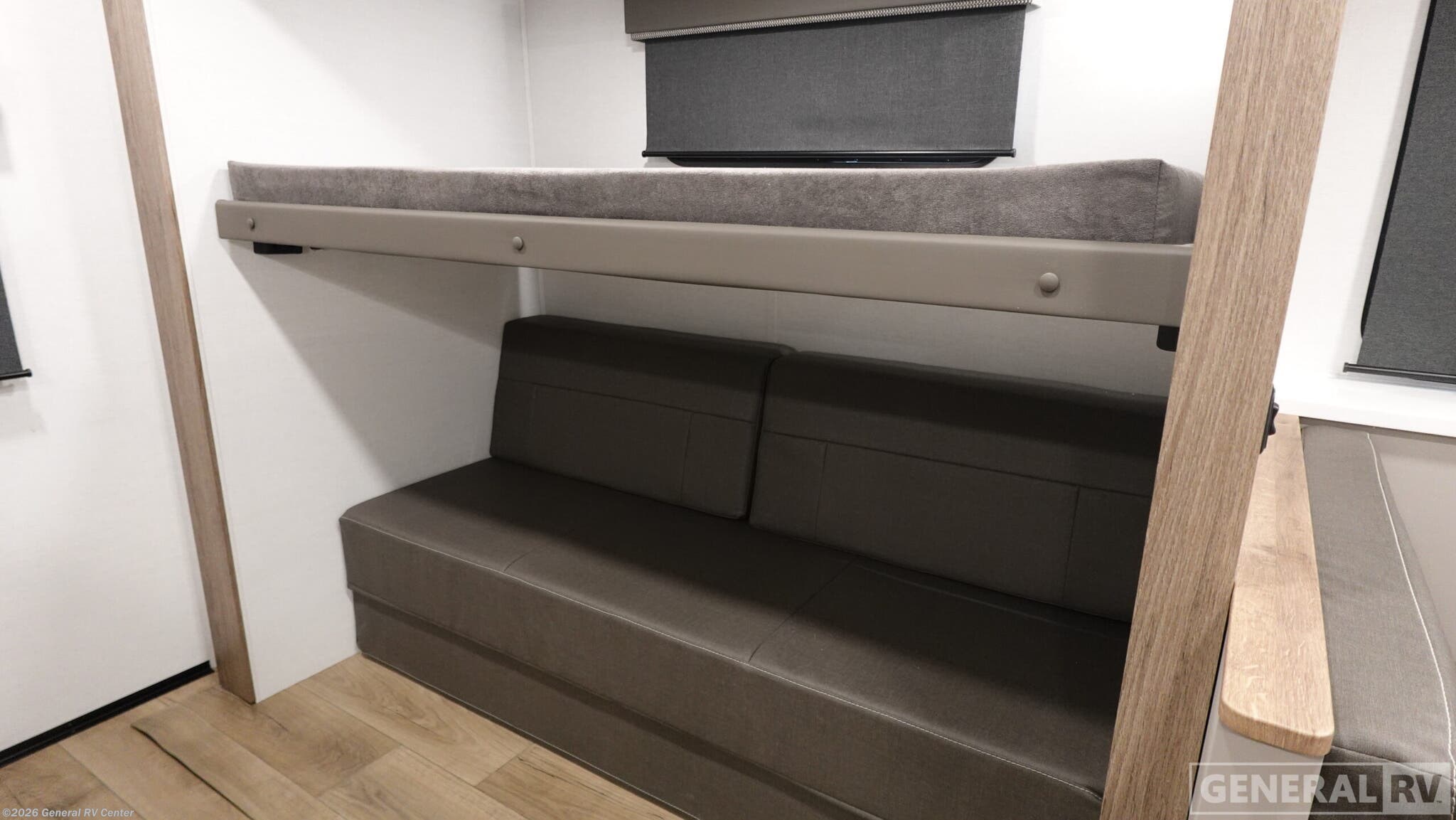 Experience the perfect blend of comfort and adventure with the 2026 Alliance RV Delta 321BH. This impressive travel trailer is designed to accommodate up to ten guests, making it ideal for families and friends ready to explore the open road. The spacious interior features a queen bed and three convertible beds, along with a cozy bunkhouse that promises restful nights for everyone. The center kitchen and living area are thoughtfully arranged to maximize space and functionality, featuring a full-size electric refrigerator and a three-burner cooktop, perfect for preparing delicious meals on the go. The Delta 321BH's design emphasizes convenience and relaxation. With two powered retractable awnings extending over 20 feet, you can enjoy the great outdoors in comfort and style. The center bath features a practical shower with a curtain, offering privacy and ease of use. Storage is abundant, with overhead compartments and wardrobes ensuring you have room for all your essentials. Measuring just under 37 feet in length, this RV combines maneuverability with ample living space, making it a versatile choice for both short getaways and extended trips. For more information or to see it in person, visit your nearest General RV dealership.