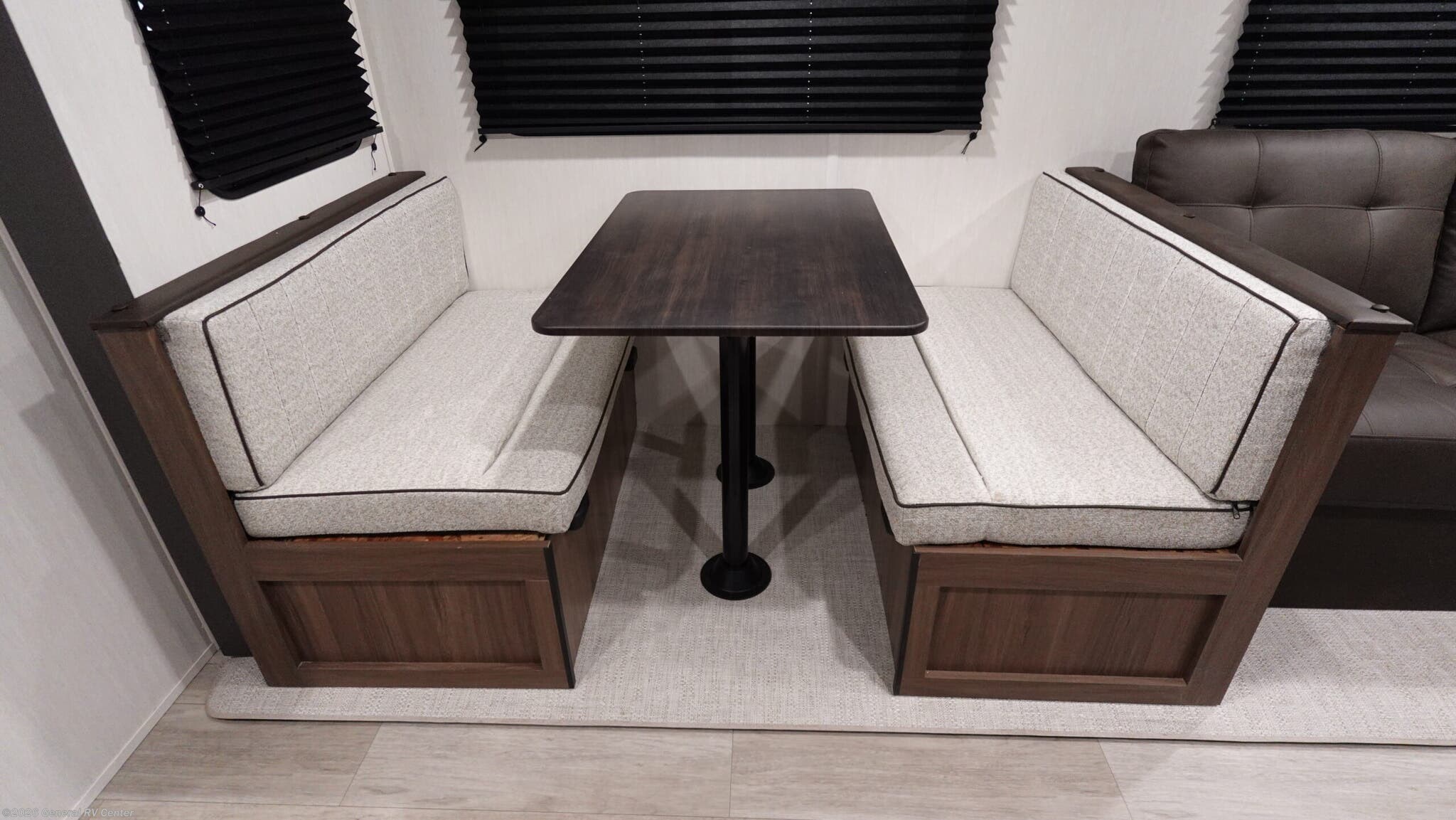 Alliance RV Delta travel trailer 321BH highlights: U-Shaped Kitchen Rear Private Bunkhouse Double Slides 10 Cu. Ft. 12V Refrigerator Outdoor Griddle Enjoy glamping in this spacious travel trailer for eight! Your guests or the kids will love the rear bunkhouse with 40" x 72" bunk beds across from a third bunk with a cube sofa below, and the slide out will make this space more open. The slide out also includes the booth dinette in the main living area, which is across from the sofa slide out. The chef will love cooking in this Delta kitchen with generous counter space, a 10 cu. ft. 12V refrigerator, plus pull-out pantry trays for dry goods and snacks. The full bath with a 30" x 36" shower and a soft close porcelain foot flush toilet will allow you to fresh up each day without having to use the camp's facilities. And don't overlook the front private bedroom with a queen bed, wardrobe nightstands, a third wardrobe plus overhead storage; now nothing has to get left behind! Form and function work together with every one of these Alliance RV Delta travel trailers! They are built with a walk-on roof with a seamless PVC roof covering, Mylar reinforced exterior seals, and a heated and enclosed underbelly to protect your unit. The commercial grade vinyl flooring will be easy to clean, and the oversized atrium windows throughout let in plenty of natural sunlight. With 62 cu. ft. of drop frame pass-through storage, you can bring along all of your essential camping gear plus it has USB charging for more convenience. There are many at home interior conveniences including a Bluetooth speaker, USB charging throughout, and even a pull-out kitchen trash can. Come find your favorite model today!