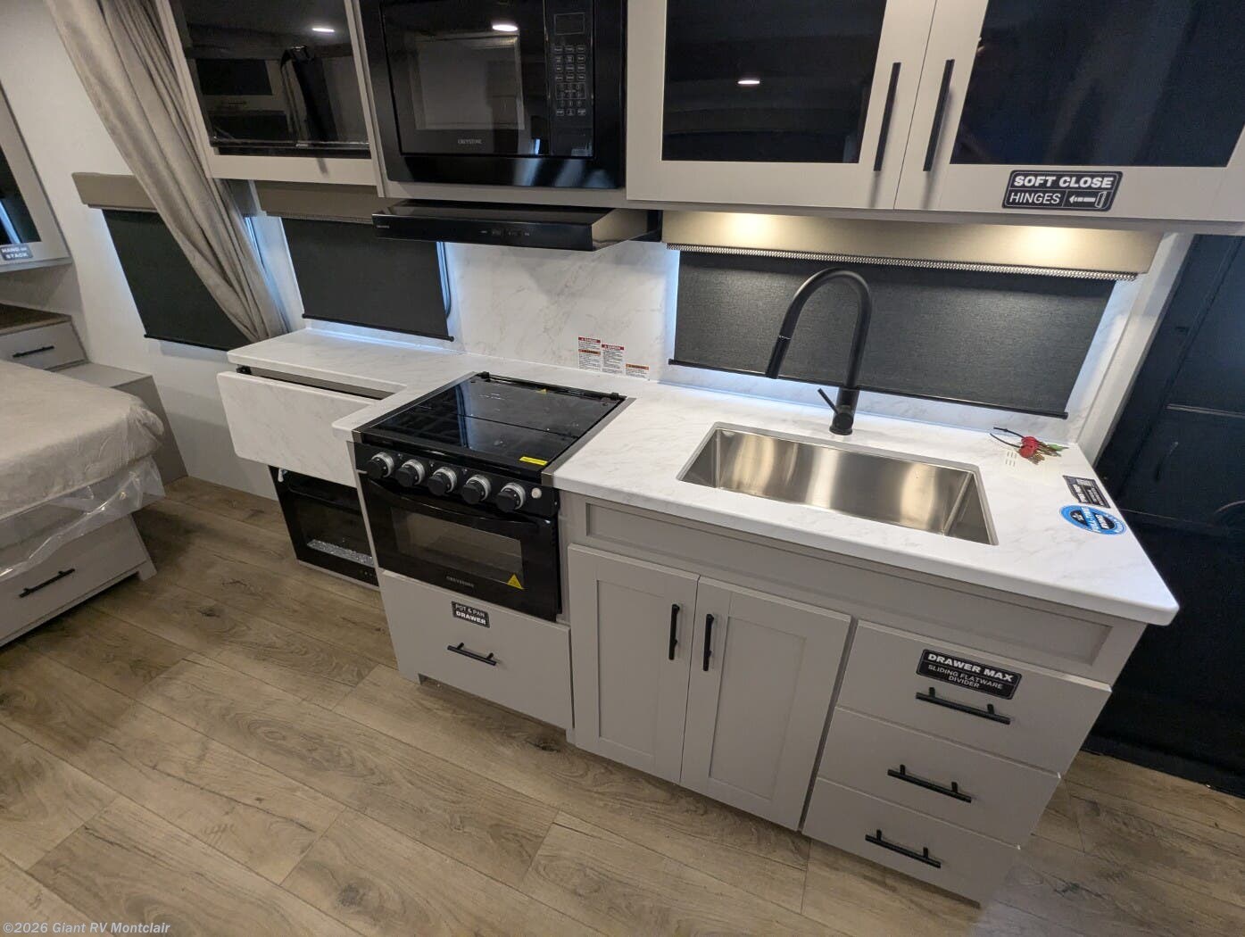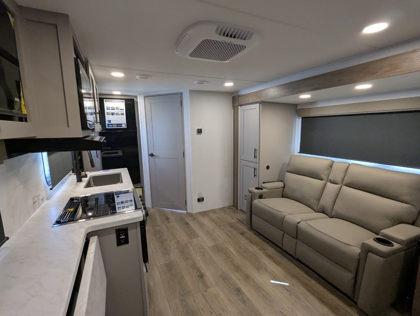 • Lightweight Build with Premium Features including a 10 cu. ft. 12V refrigerator, 200W solar package, tankless water heater, heated/enclosed underbelly, and 45-gallon tank capacities across the board for extended camping