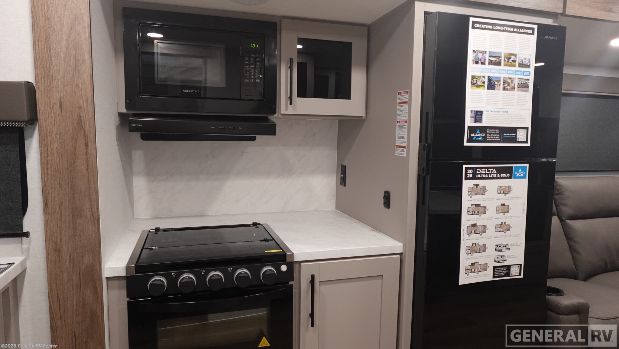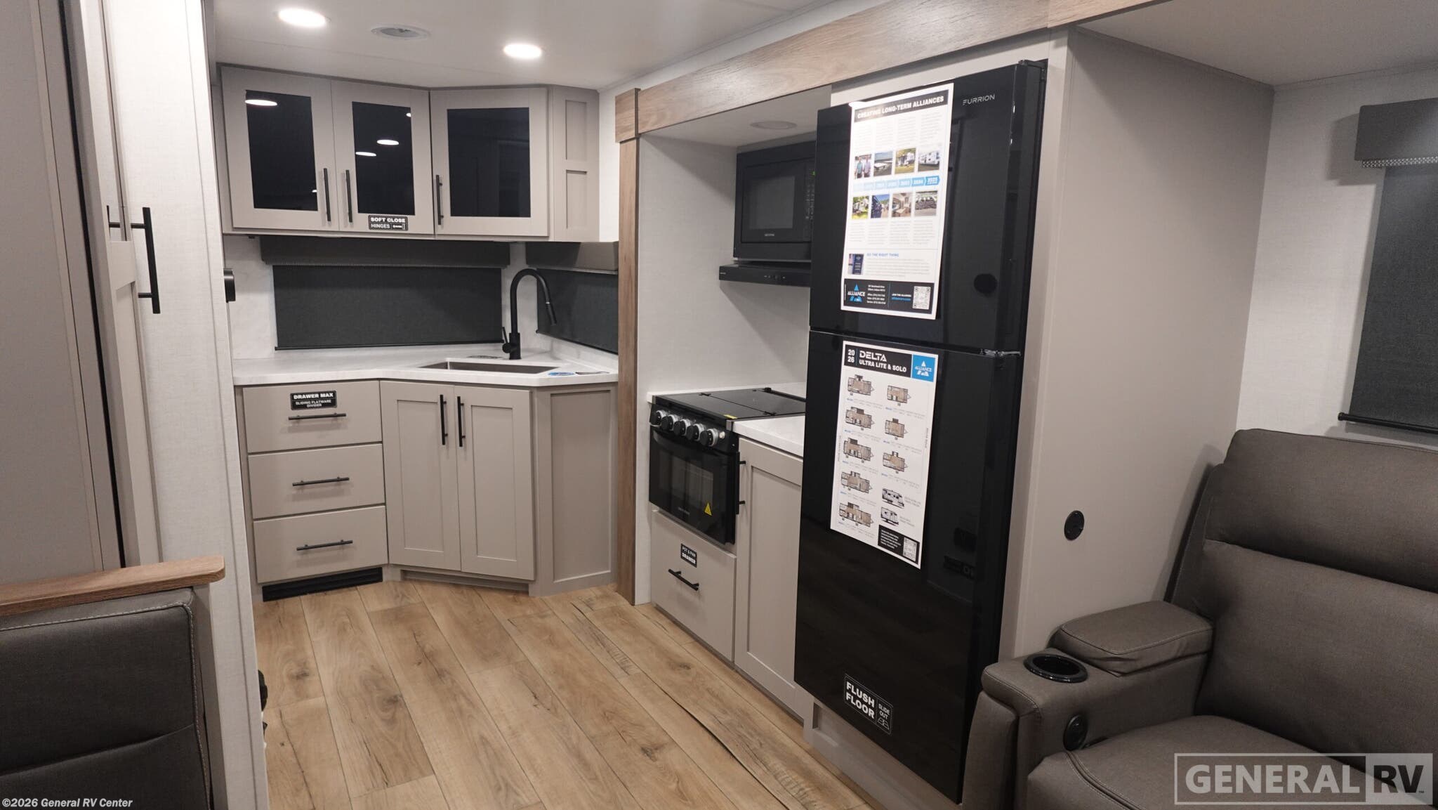 Discover the 2026 Alliance RV Delta UL ML226, a remarkable ultralight travel trailer that redefines lightweight towing without sacrificing comfort or quality. This intelligently designed mid-living model offers couples and small families the perfect balance of mobility and residential amenities. At just over 27 feet, the ML226 proves that you don't need a heavy-duty truck to enjoy premium RV adventures. The open floor plan features a convenient slide-out that expands your living space, creating room for either a spacious dinette or optional theater seating, perfect for entertaining guests or enjoying quiet evenings. The front bedroom provides a peaceful sanctuary with a comfortable queen bed featuring walk-around access, dual nightstands, and dual wardrobes for ample storage. The thoughtfully appointed kitchen brings the comforts of home on the road with solid surface countertops, a convection microwave, two-burner cooktop, and a residential refrigerator. The rear bathroom offers privacy and convenience with a large shower, linen storage, and modern fixtures that make freshening up a pleasure. Built with Alliance RV's commitment to quality, the Delta UL ML226 features durable Azdel composite sidewalls and Goodyear Endurance tires for reliable performance. The heated and enclosed underbelly ensures four-season camping capability, while the ultralight construction makes it ideal for towing with half-ton trucks and SUVs. Whether you're weekend warriors or seasonal travelers, this RV delivers the freedom to explore more destinations with less towing stress. For more details, visit your nearest General RV Dealership.