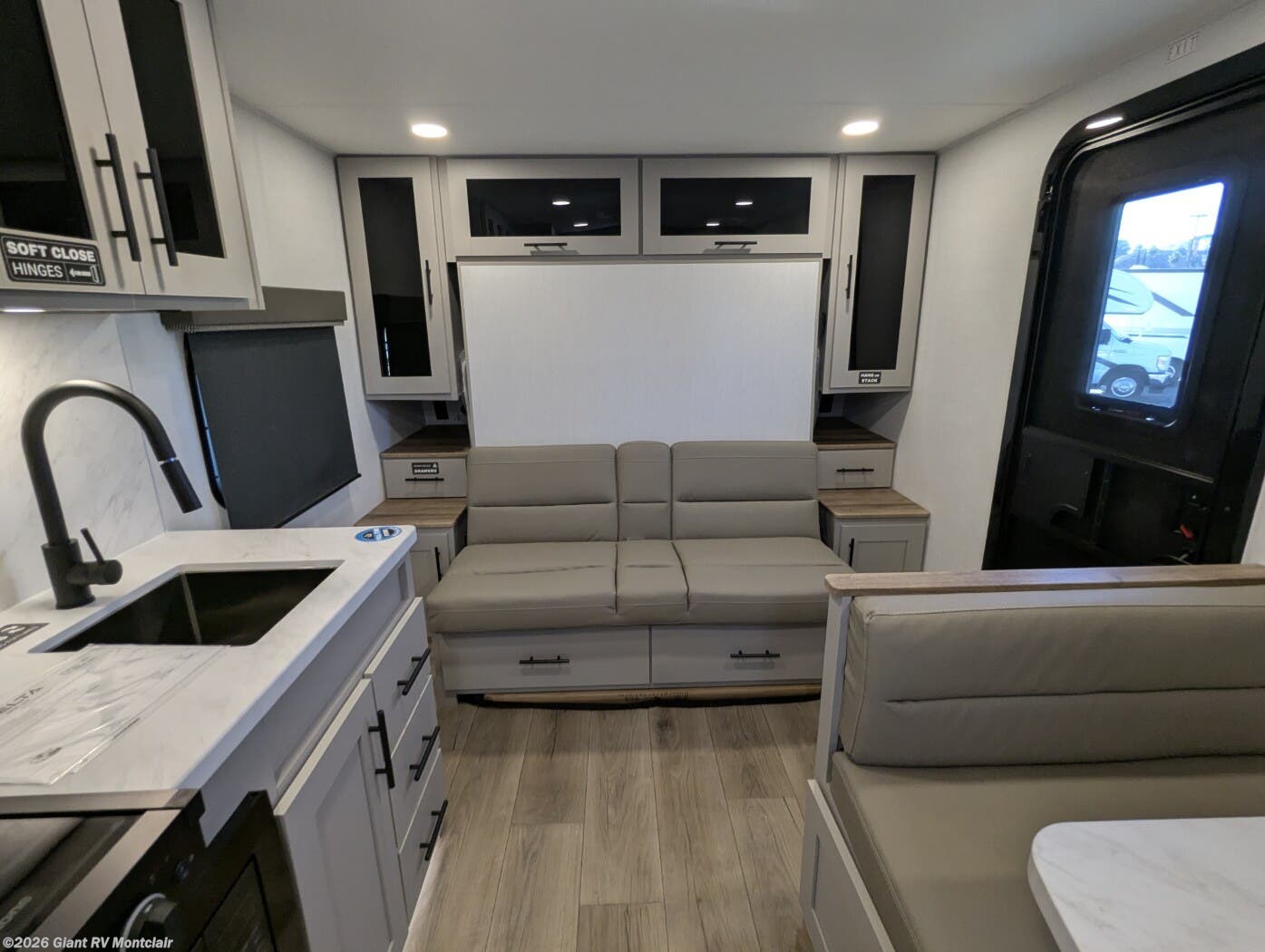 - Front Murphy Bed Layout: Converts from seating area to sleep zone—ideal for versatility and maximizing space.